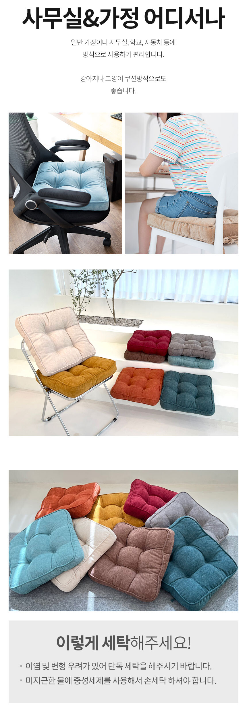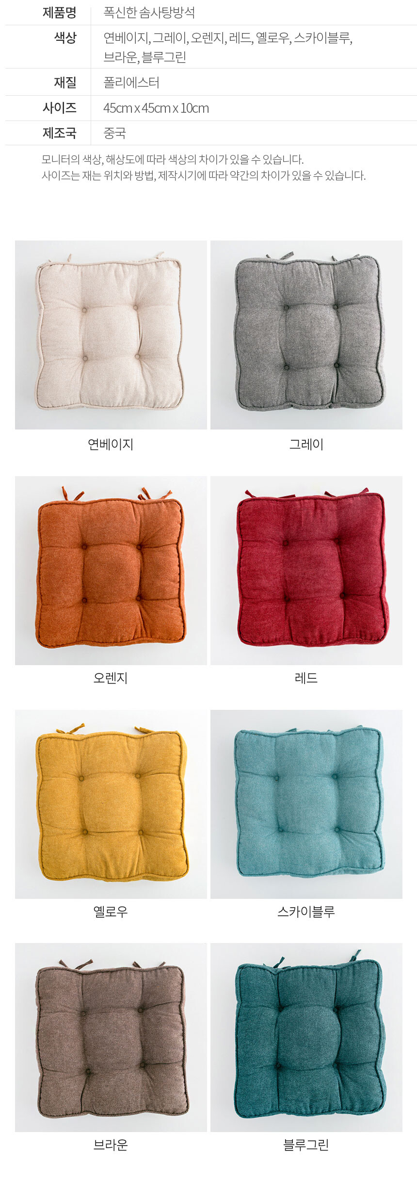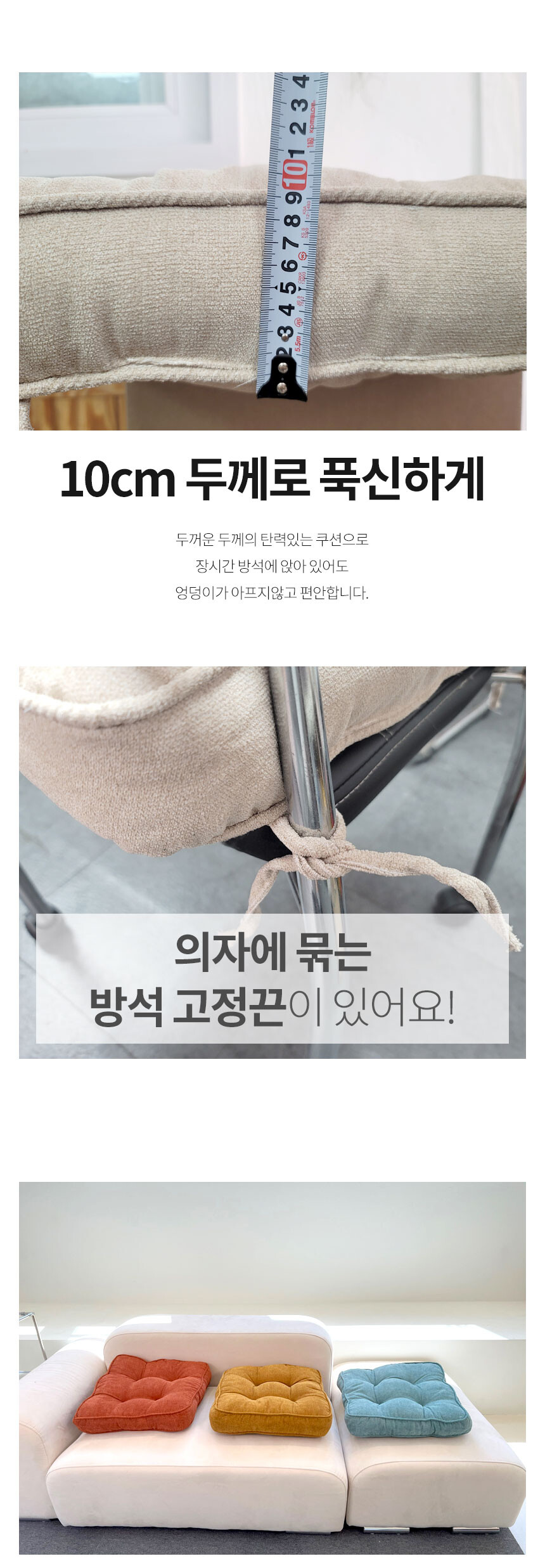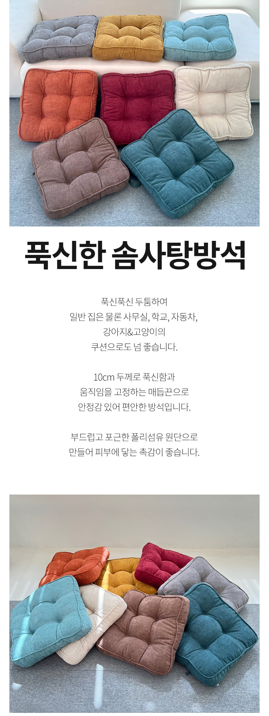 리빙안 방석 매트 의자 푹신한 사각 높은방석 10cm 8컬러