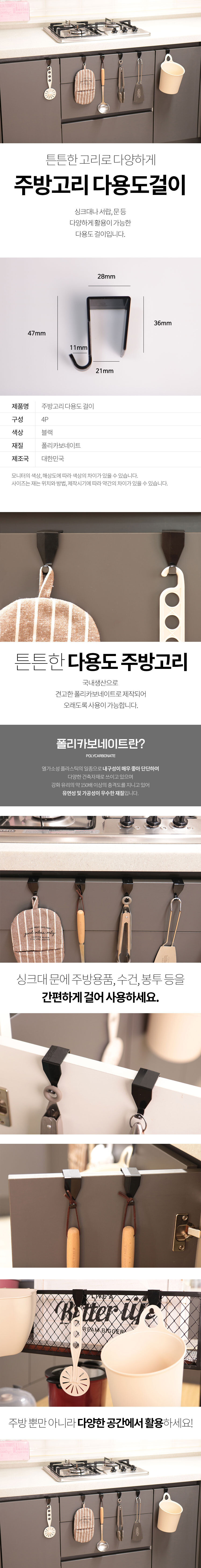 리빙안 주방고리 싱크대 봉투 다용도 걸이 4p