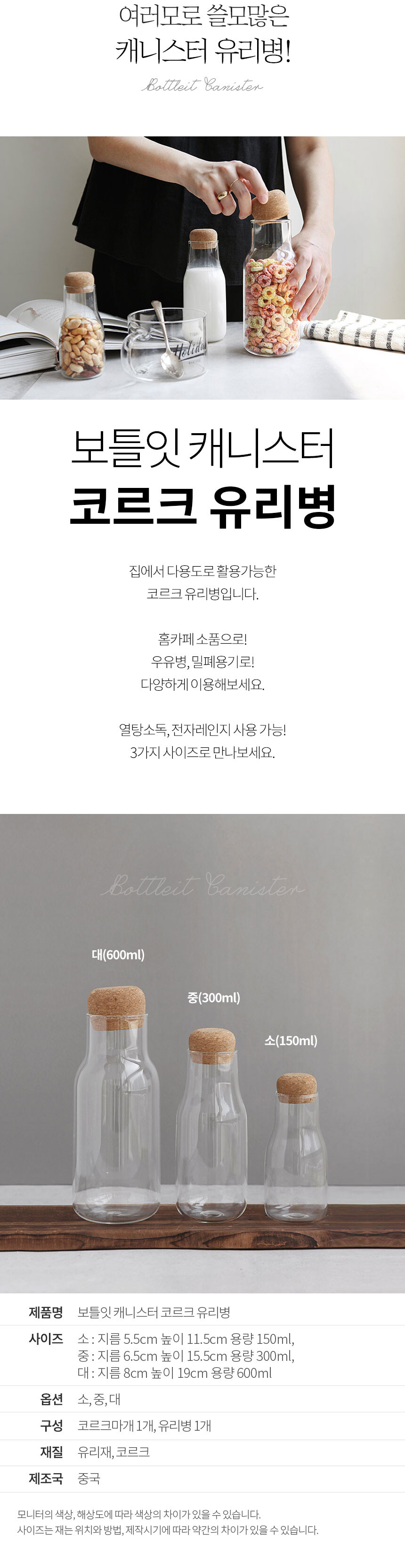 밀폐 보관 용기 코르크 내열 유리병 시리얼 원두