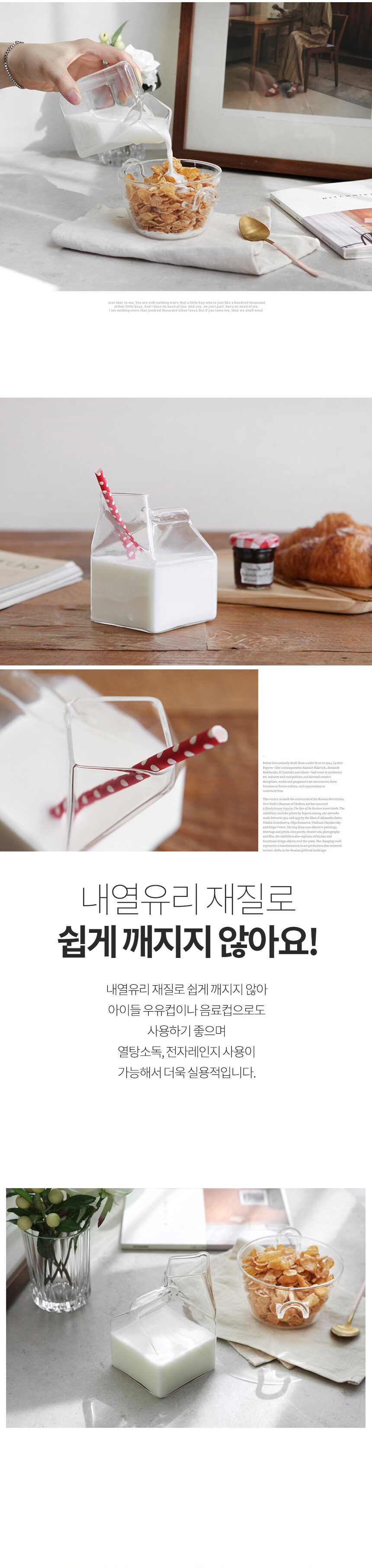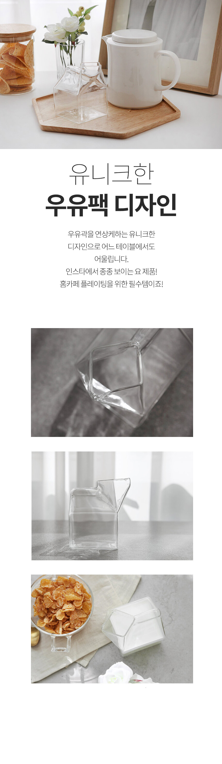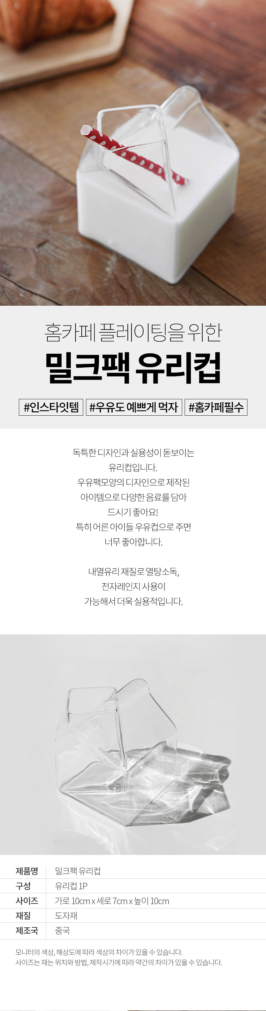홈카페 우유갑 모양 유리컵 밀크글라스 투명 쥬스 컵 우유곽