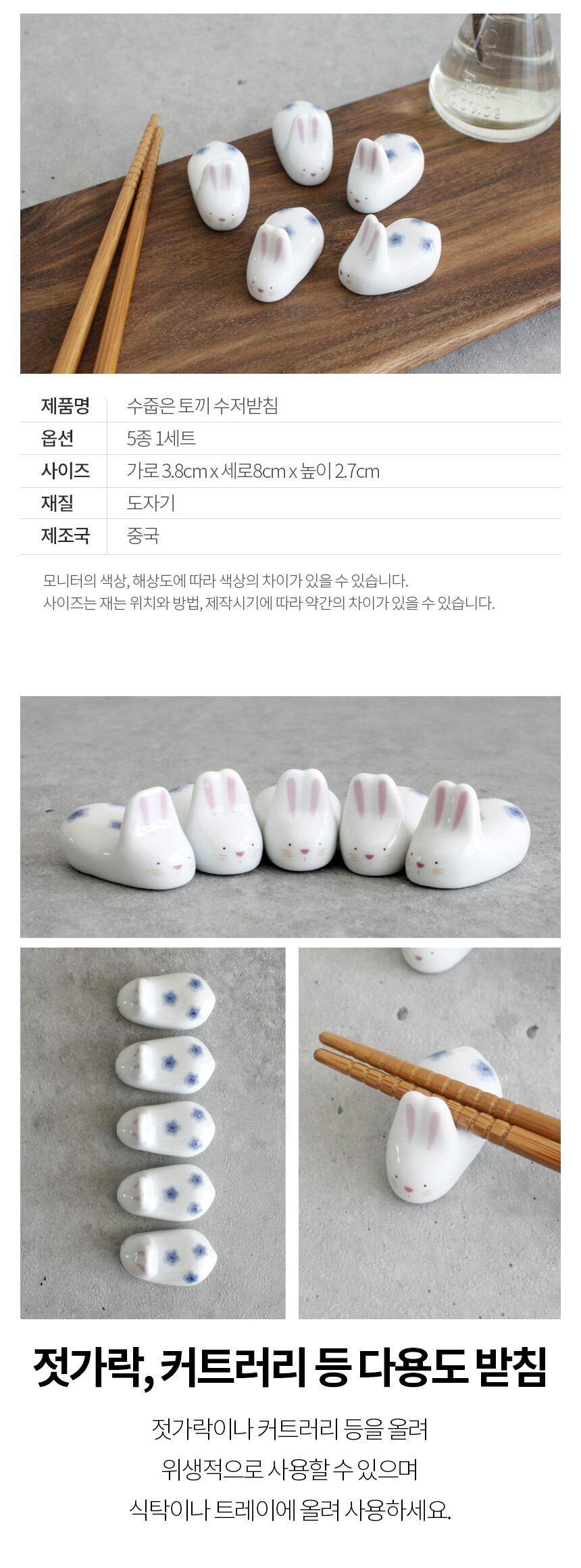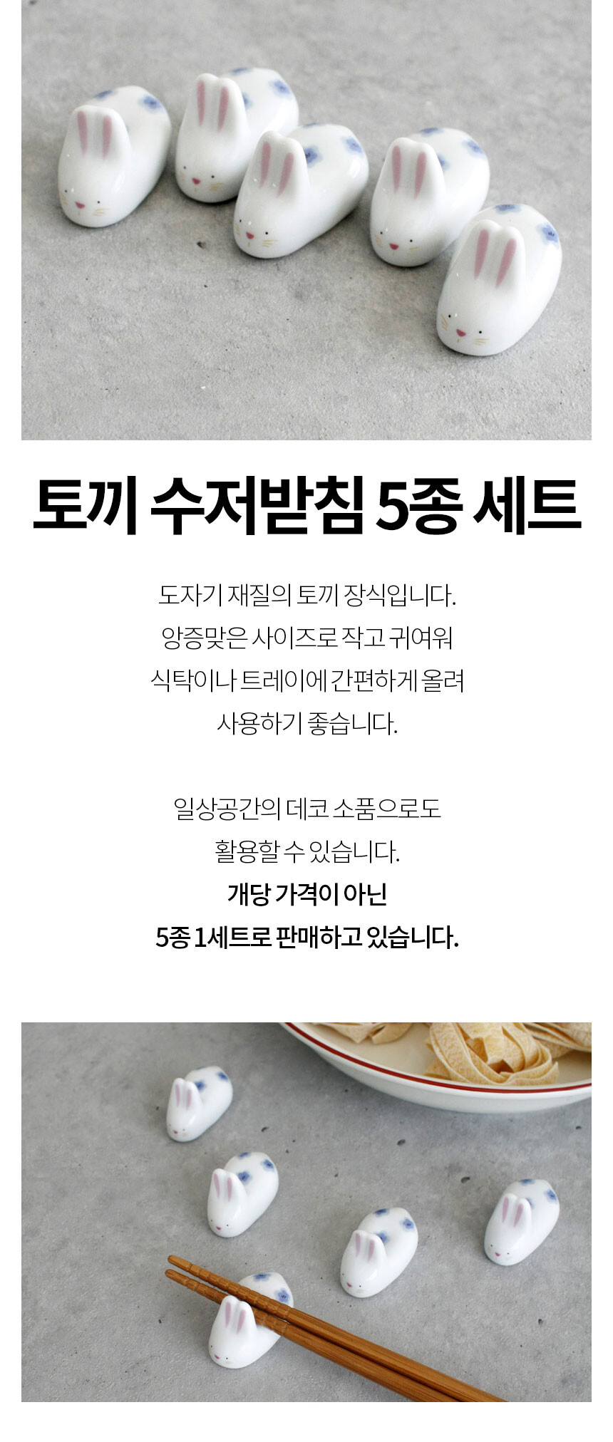 수줍은 토끼 수저 받침 5p