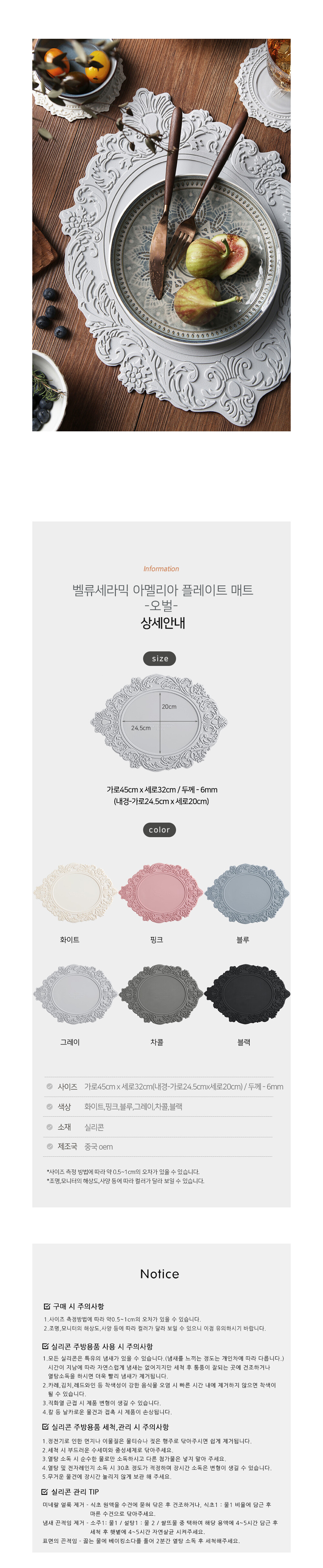 [벨류세라믹] 아멜리아 플레이트 실리콘 테이블매트(오벌)