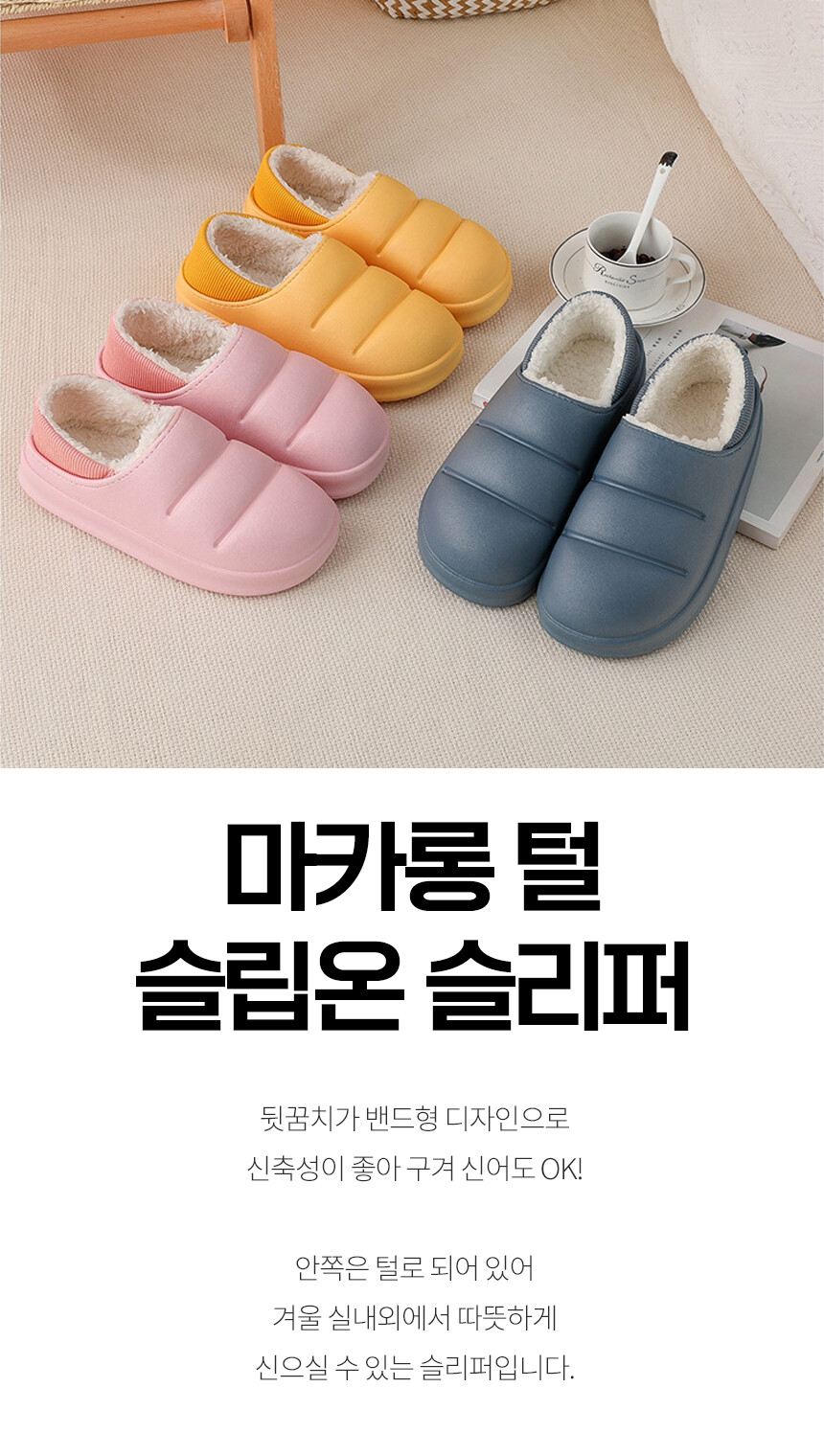 마카롱 슬립온 털 실내화 겨울 따뜻한 방한 슬리퍼