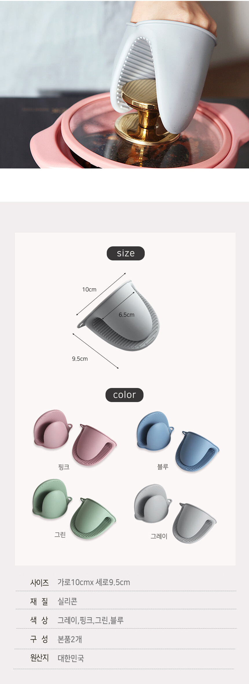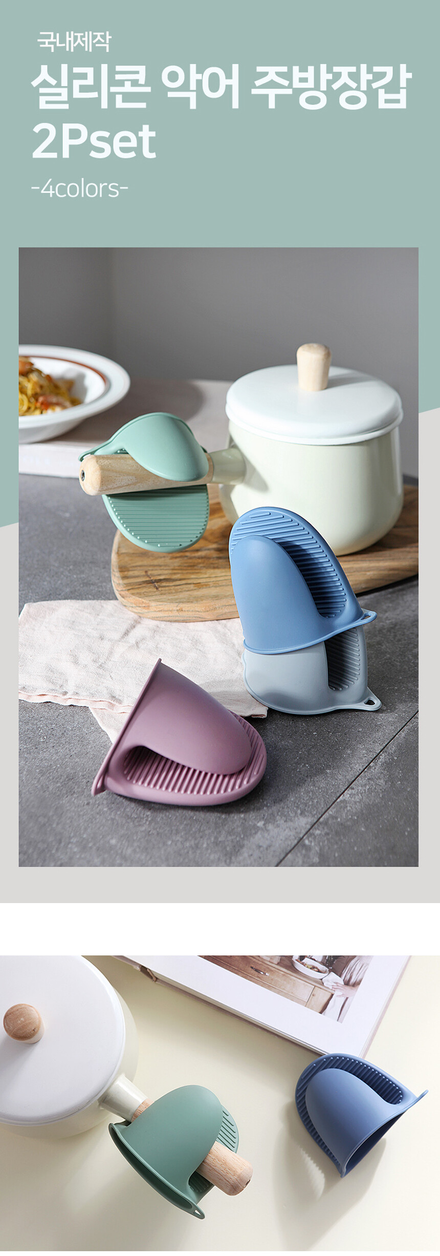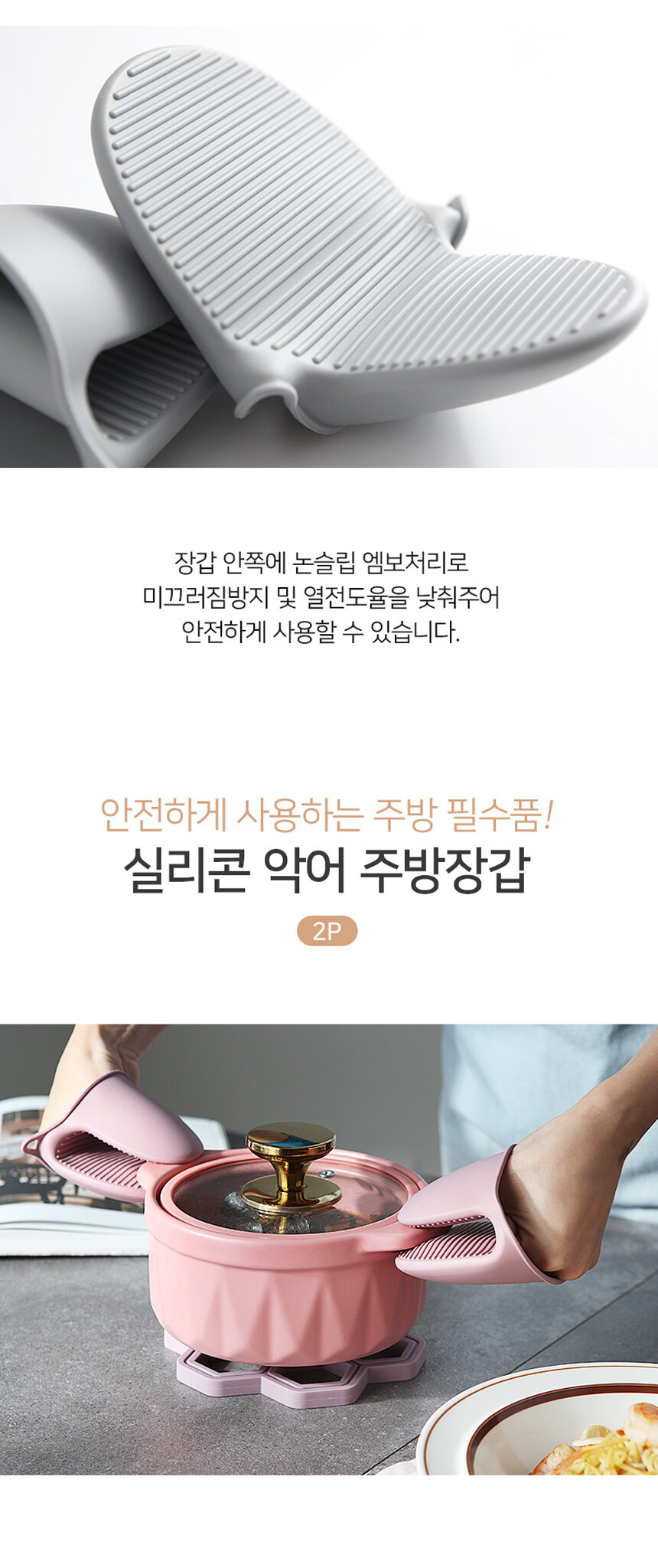 리빙안 국내제작 실리콘 냄비 오븐 손잡이 뉴악어 주방 장갑 2Pset