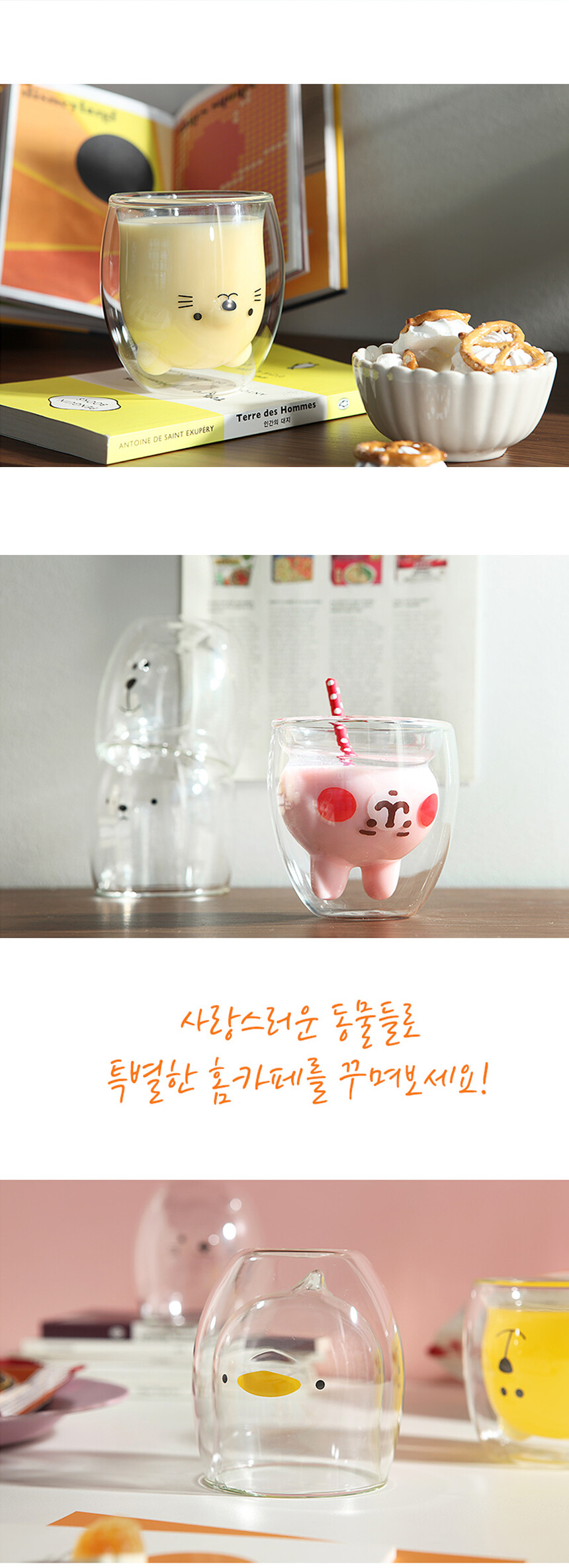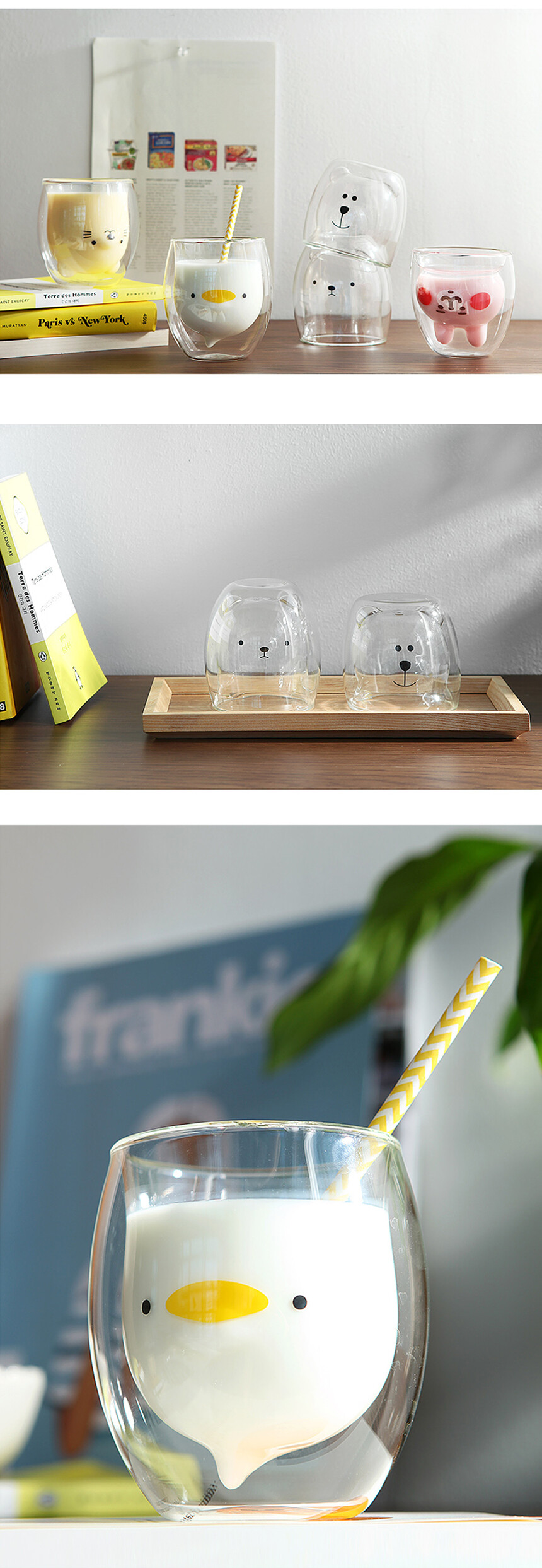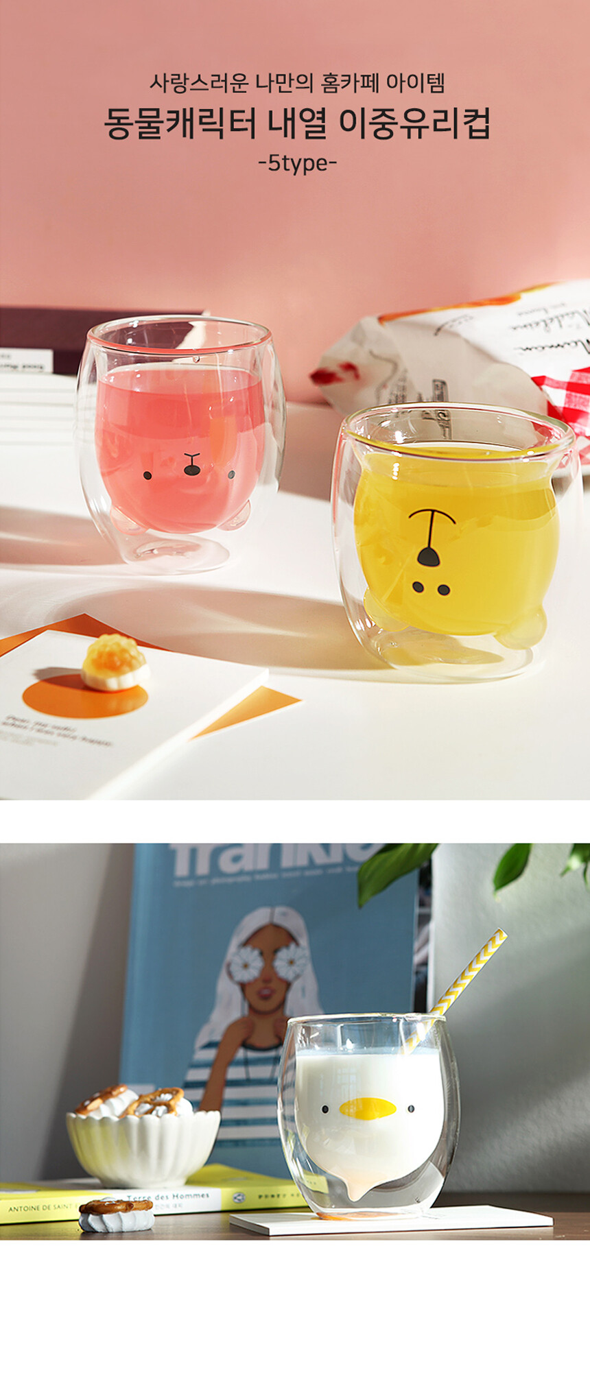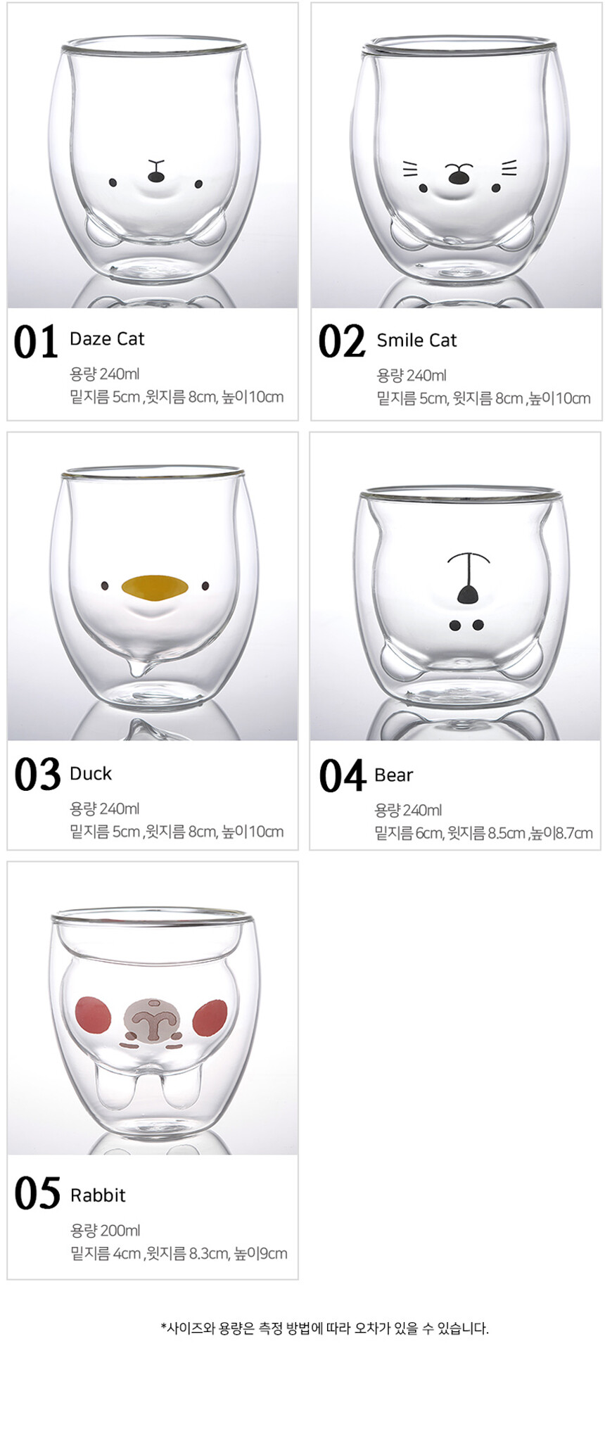 동물 내열 이중 유리컵 곰 베어 고양이 오리