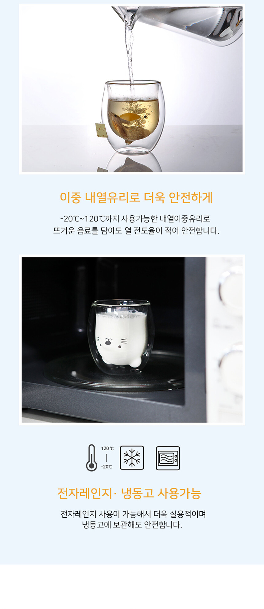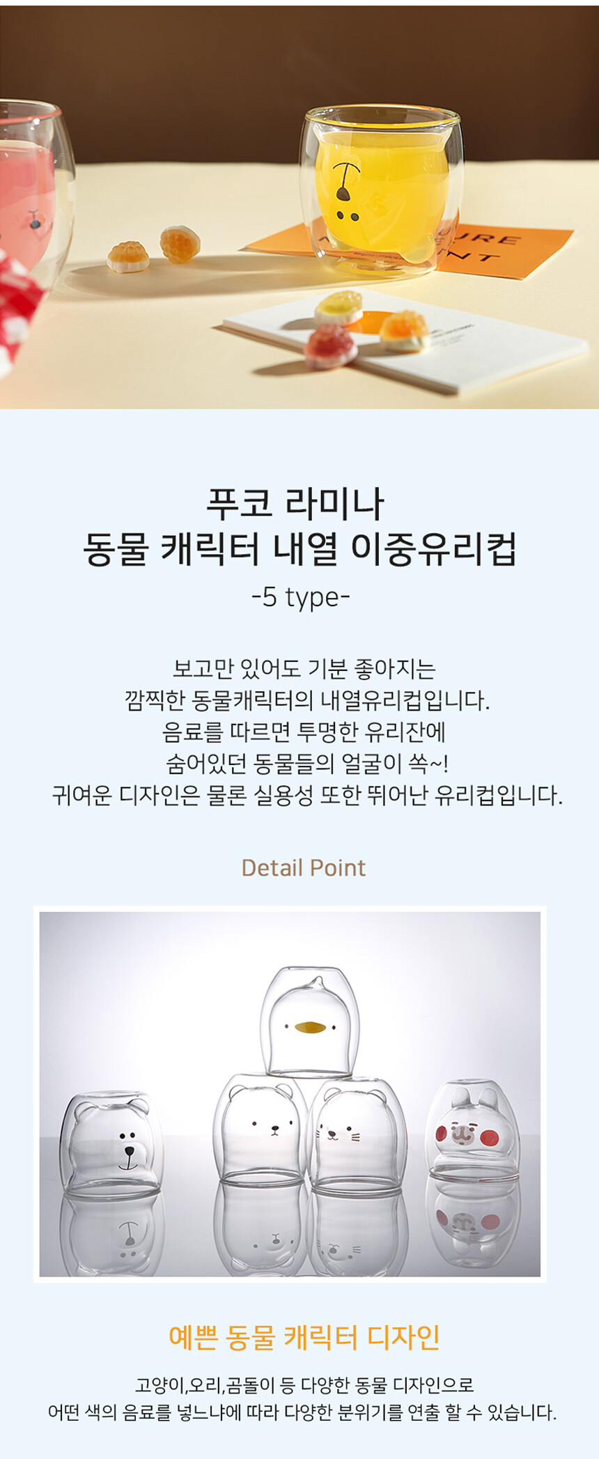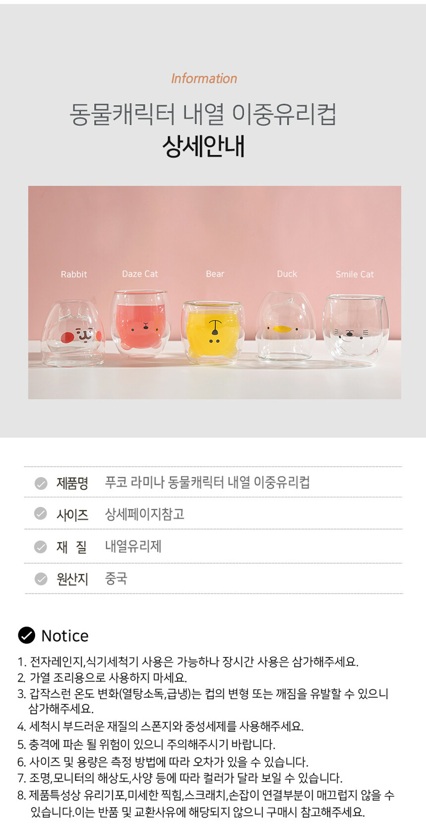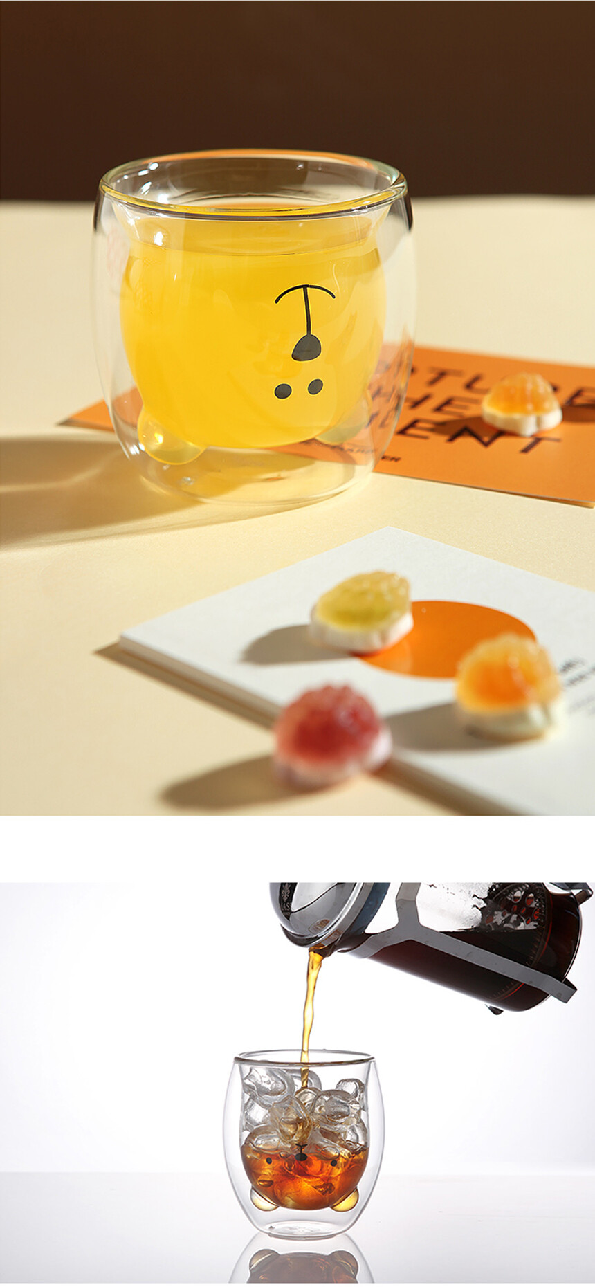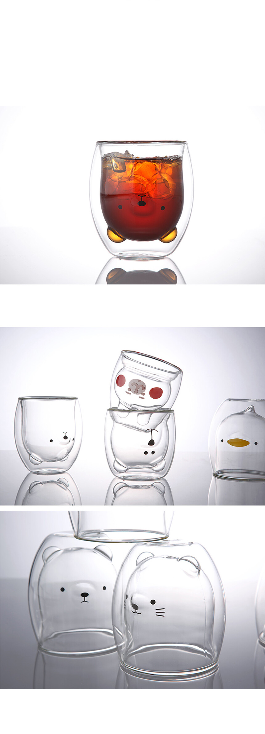 동물 내열 이중 유리컵 곰 베어 고양이 오리