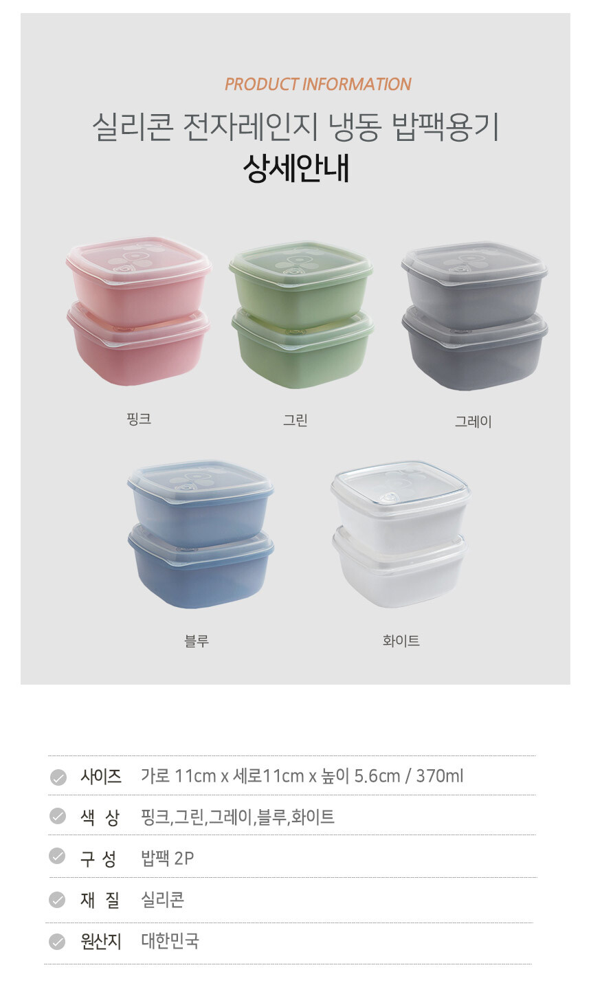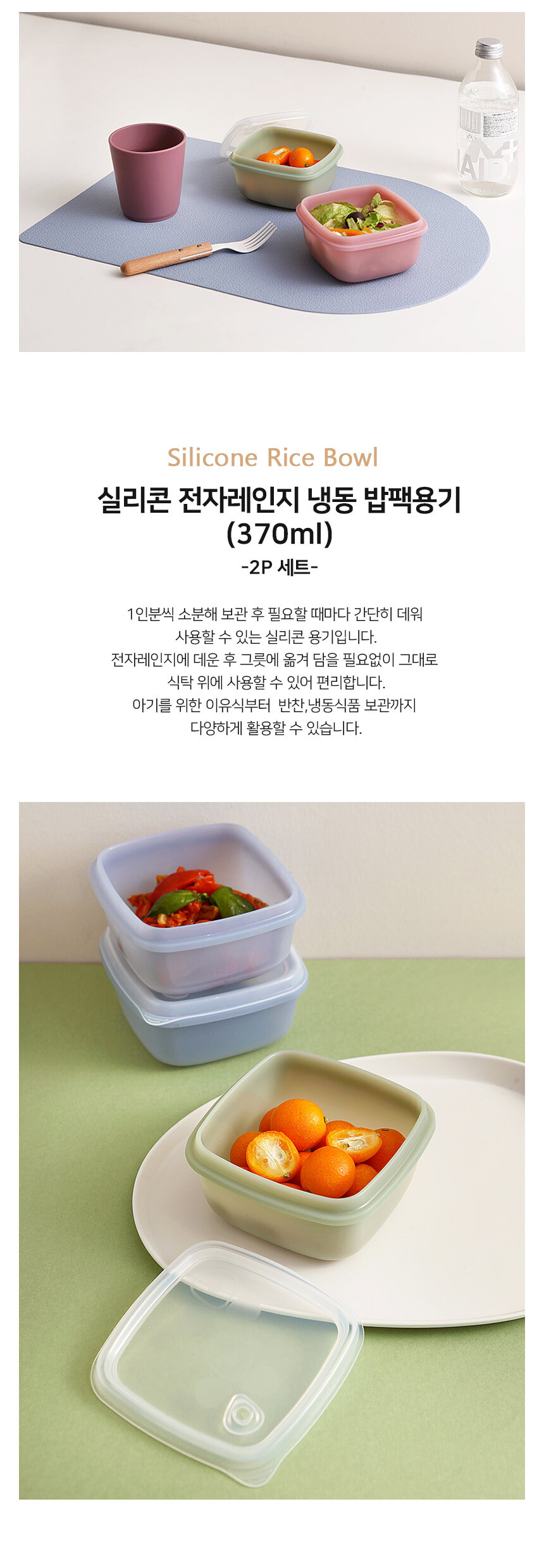 실리콘 전자레인지 냉동 밥팩용기2개세트(370ml)