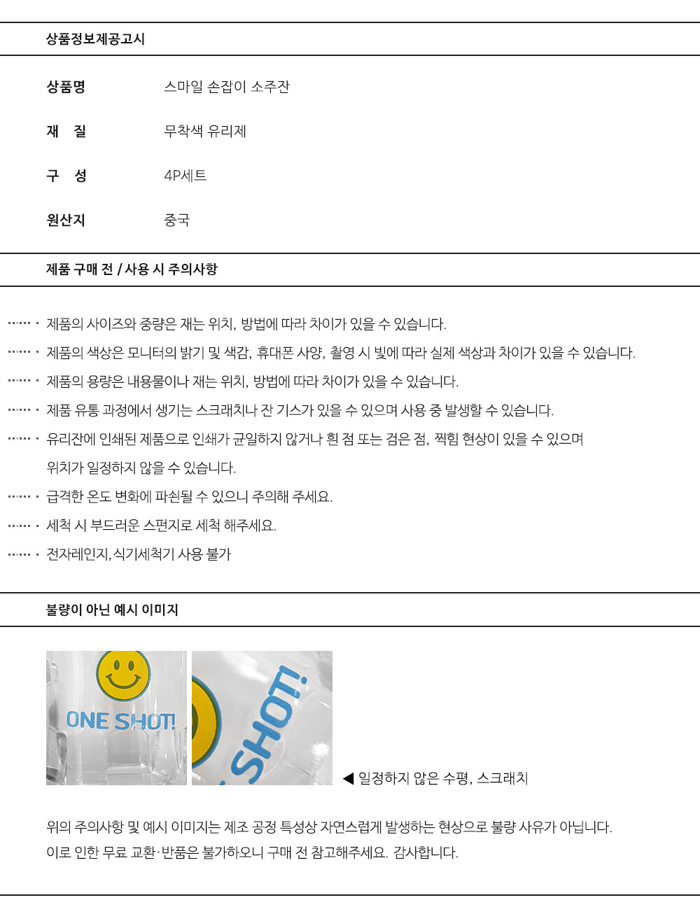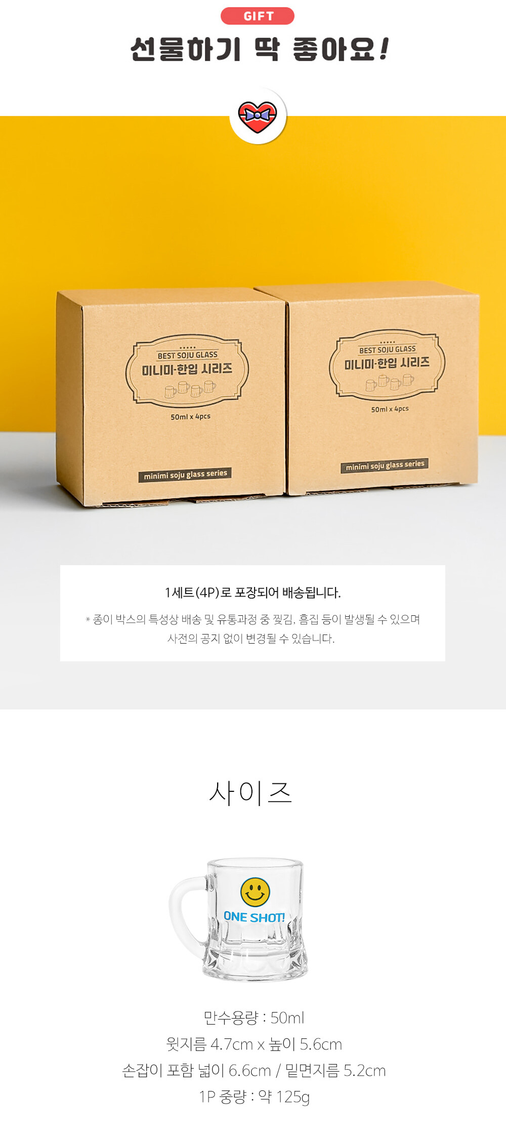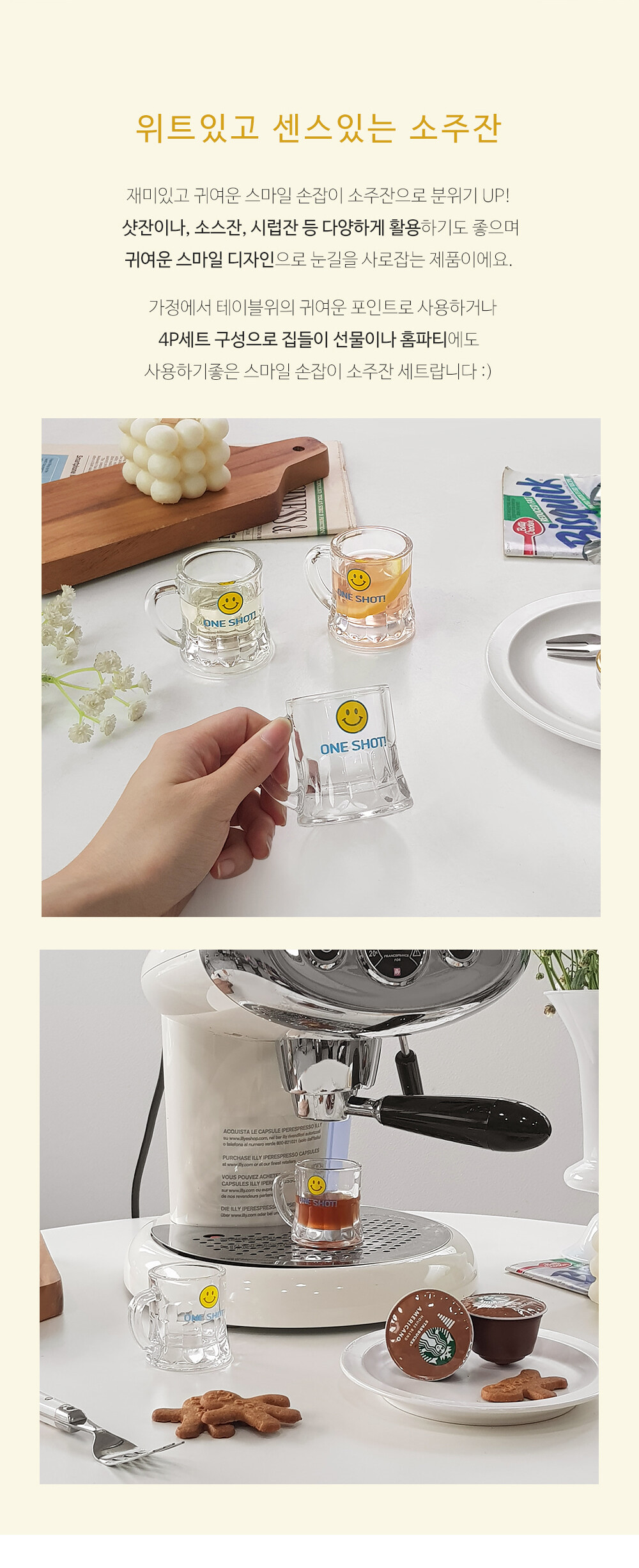 스마일 손잡이 소주잔 4P 세트 / 술잔 집들이선물 샷잔