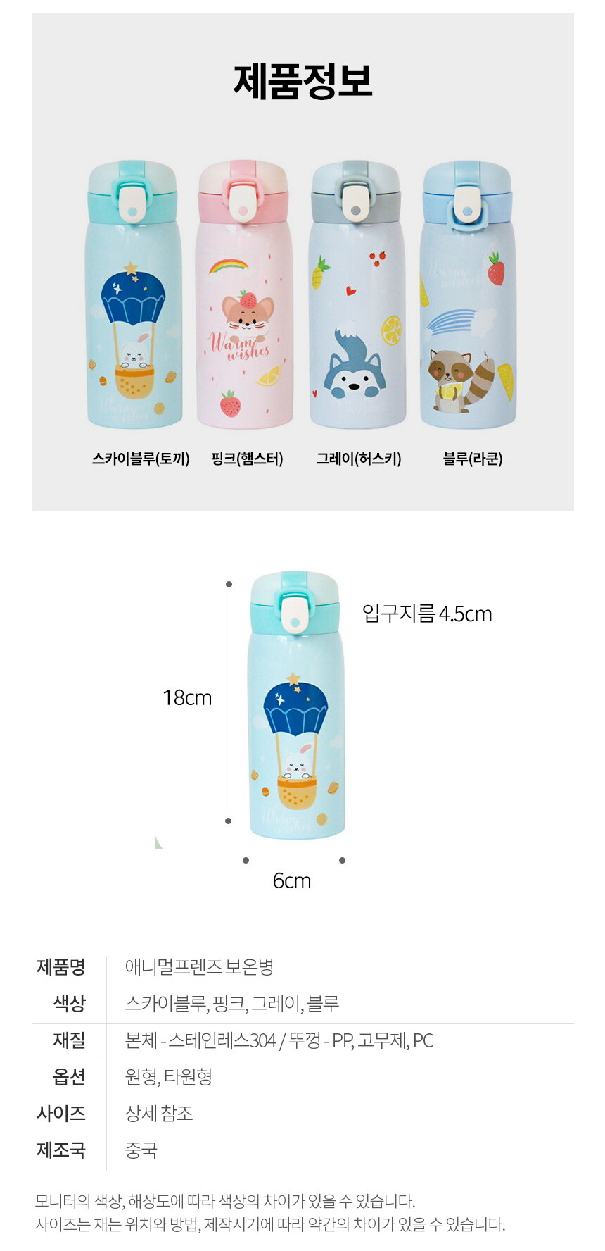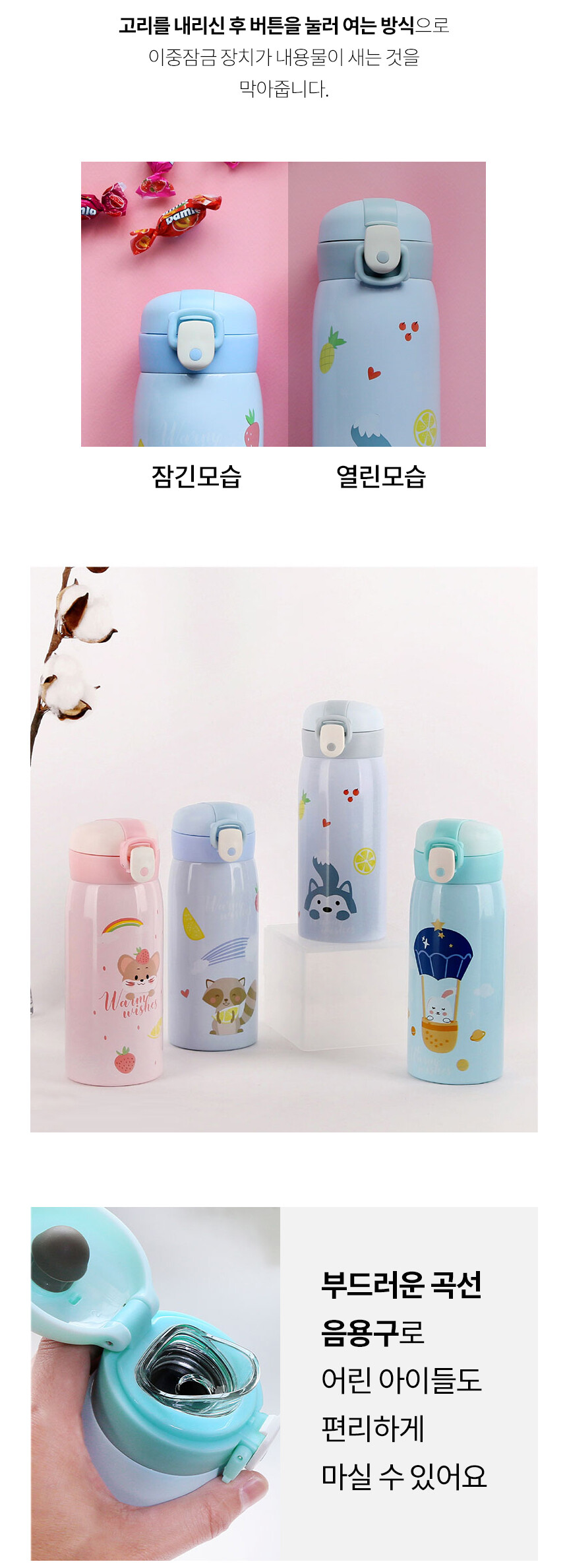 애니멀프렌즈 원터치 유아 아동 어린이집 보온병 어린이 물병