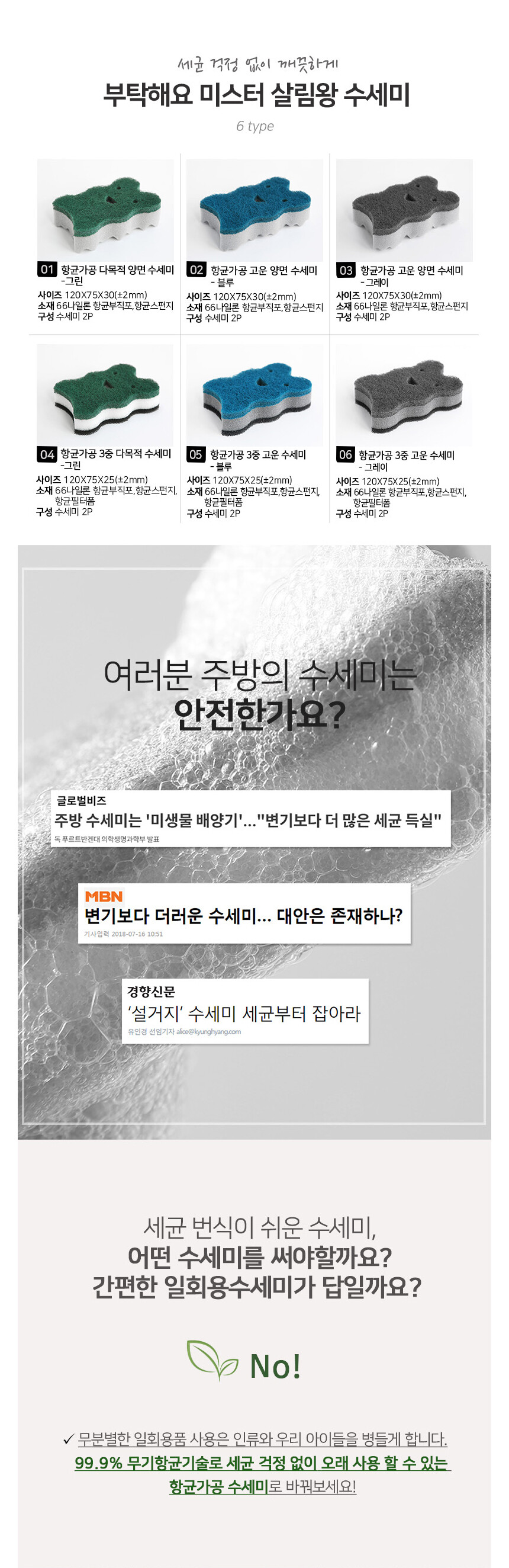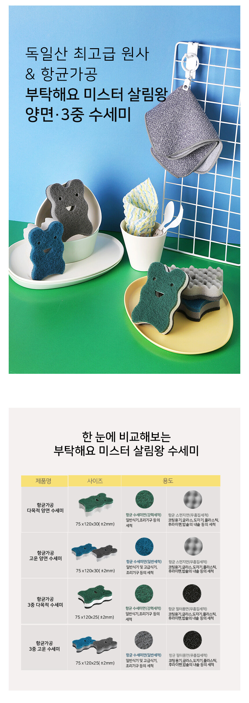 살림왕 향균 수세미 2개세트 / 독일산 최고급원사 주방 다목적 스펀지