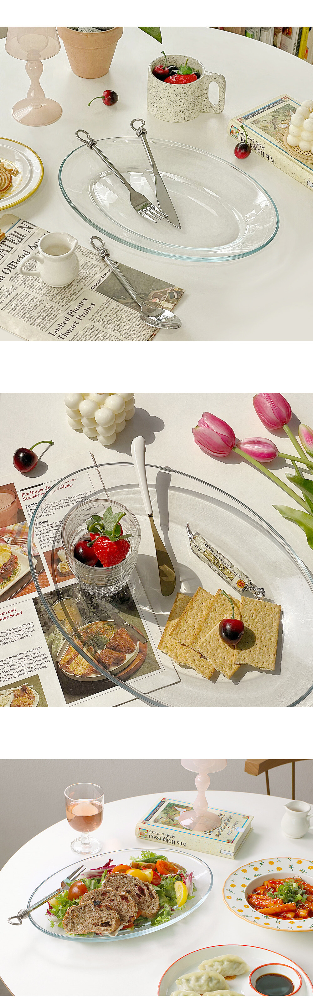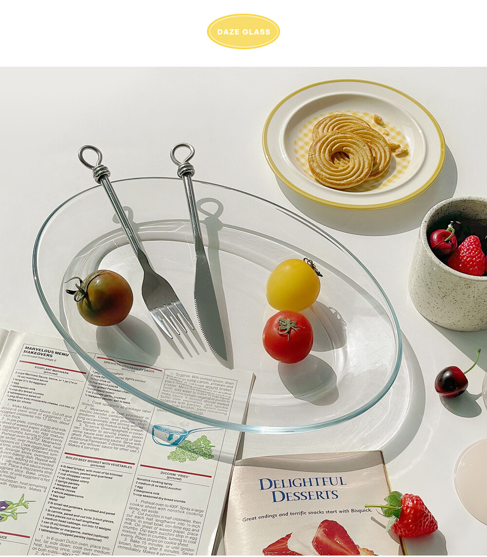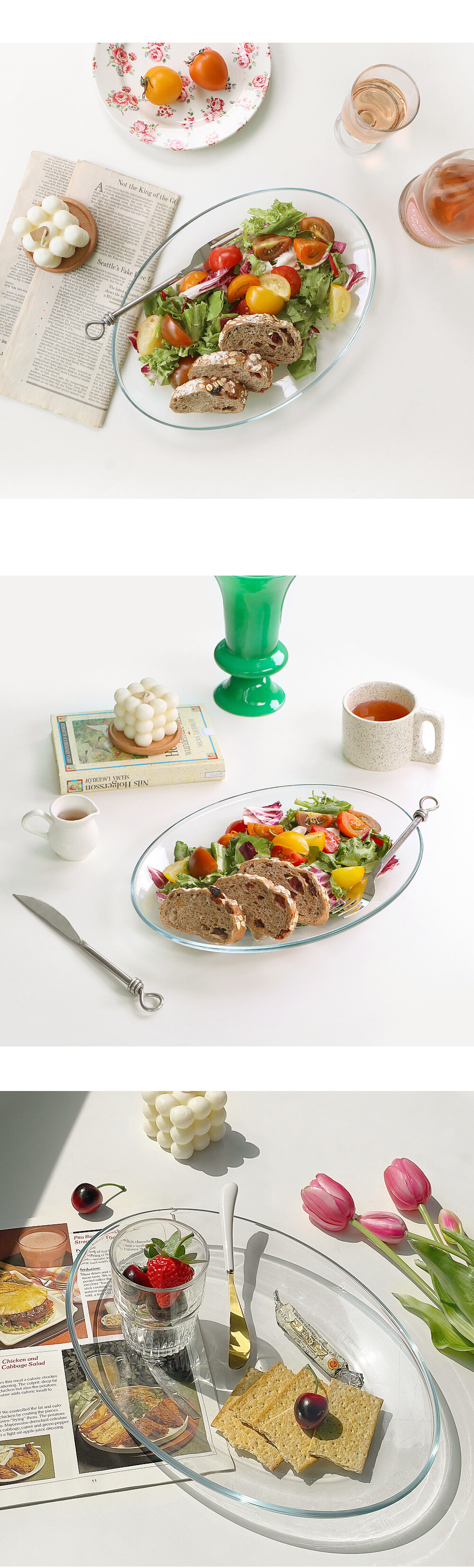글라스 오발 플레이트 / 타원접시 투명 내열 유리접시