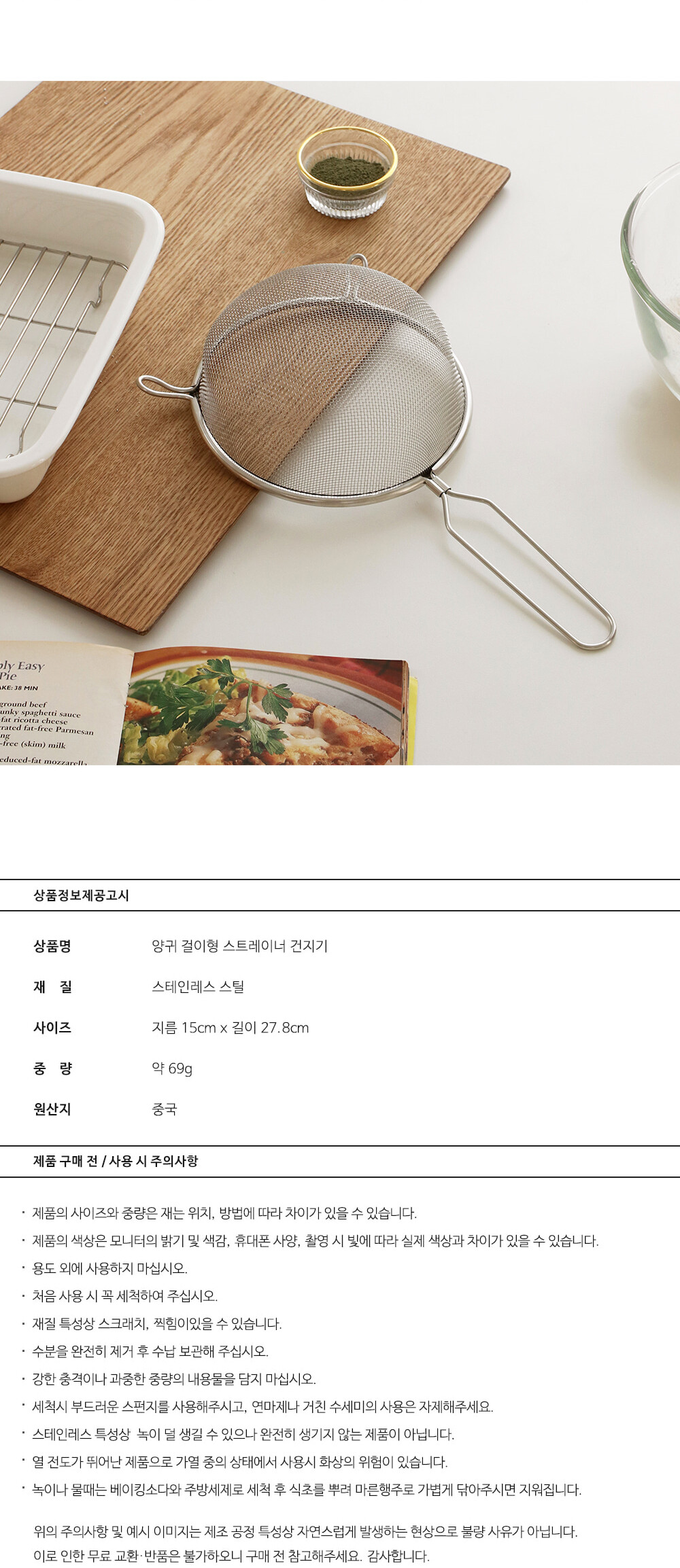 양귀 걸이형 스트레이너 스텐 건지기 채망 채반 튀김망 튀김채반 거름망