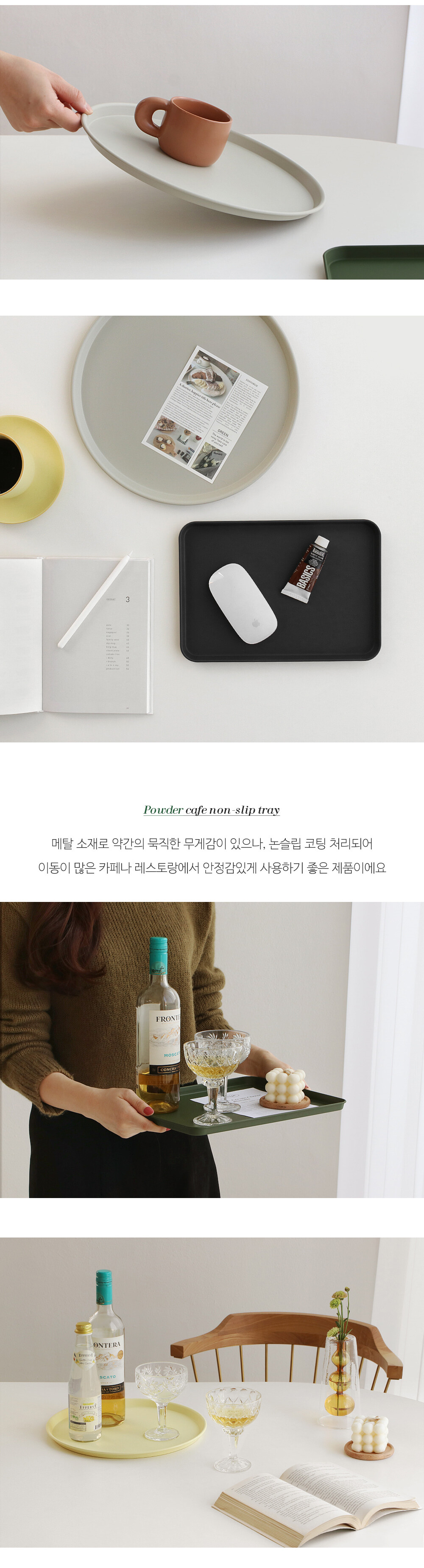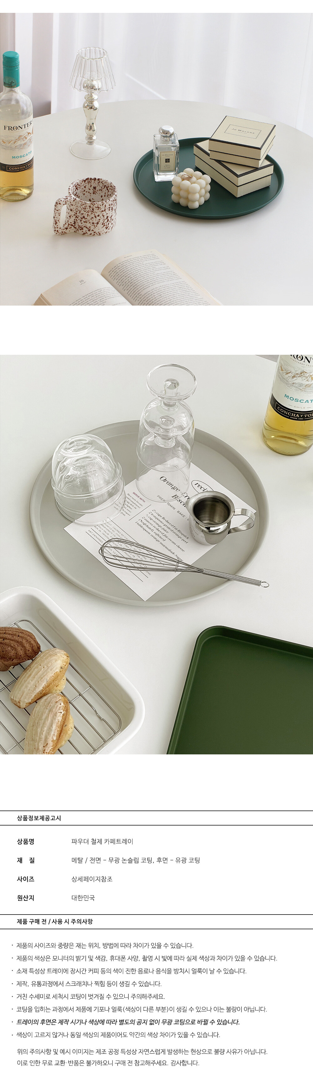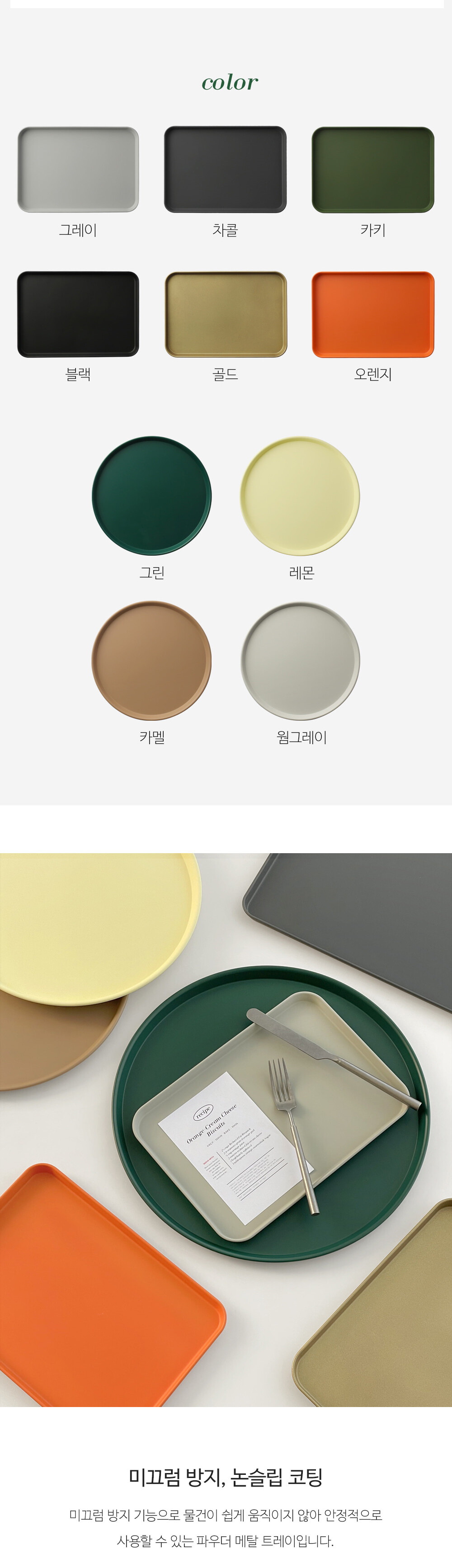 파우더 철제 논슬립 카페트레이 사각 원형 무광 메탈쟁반