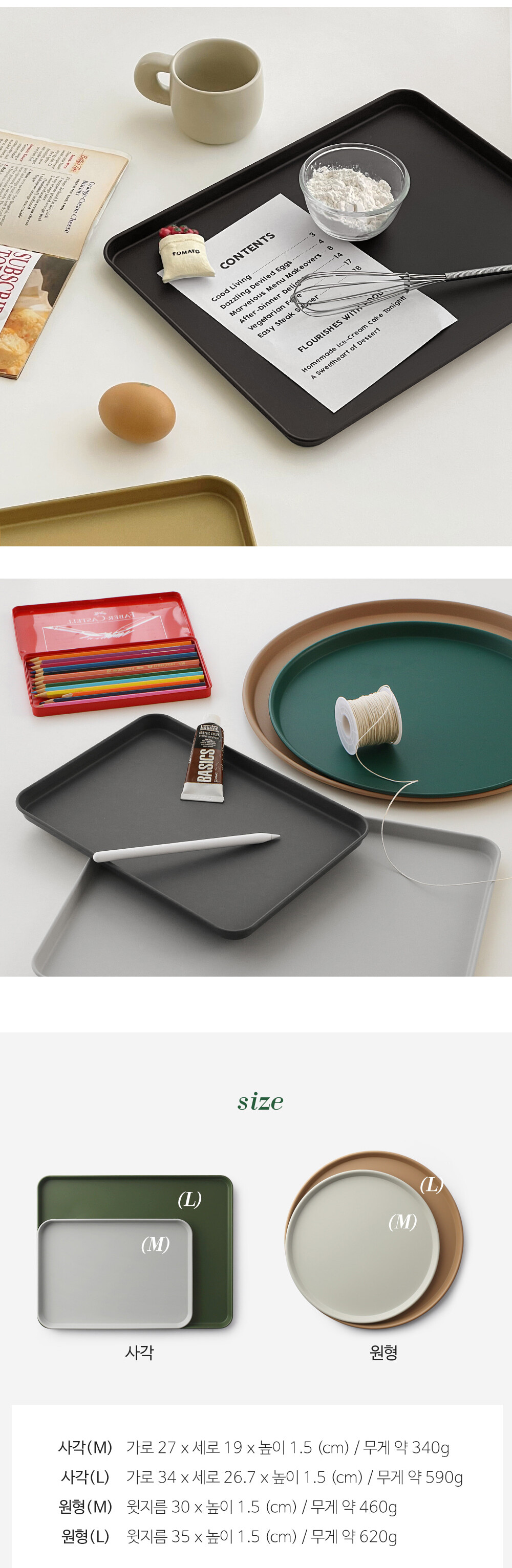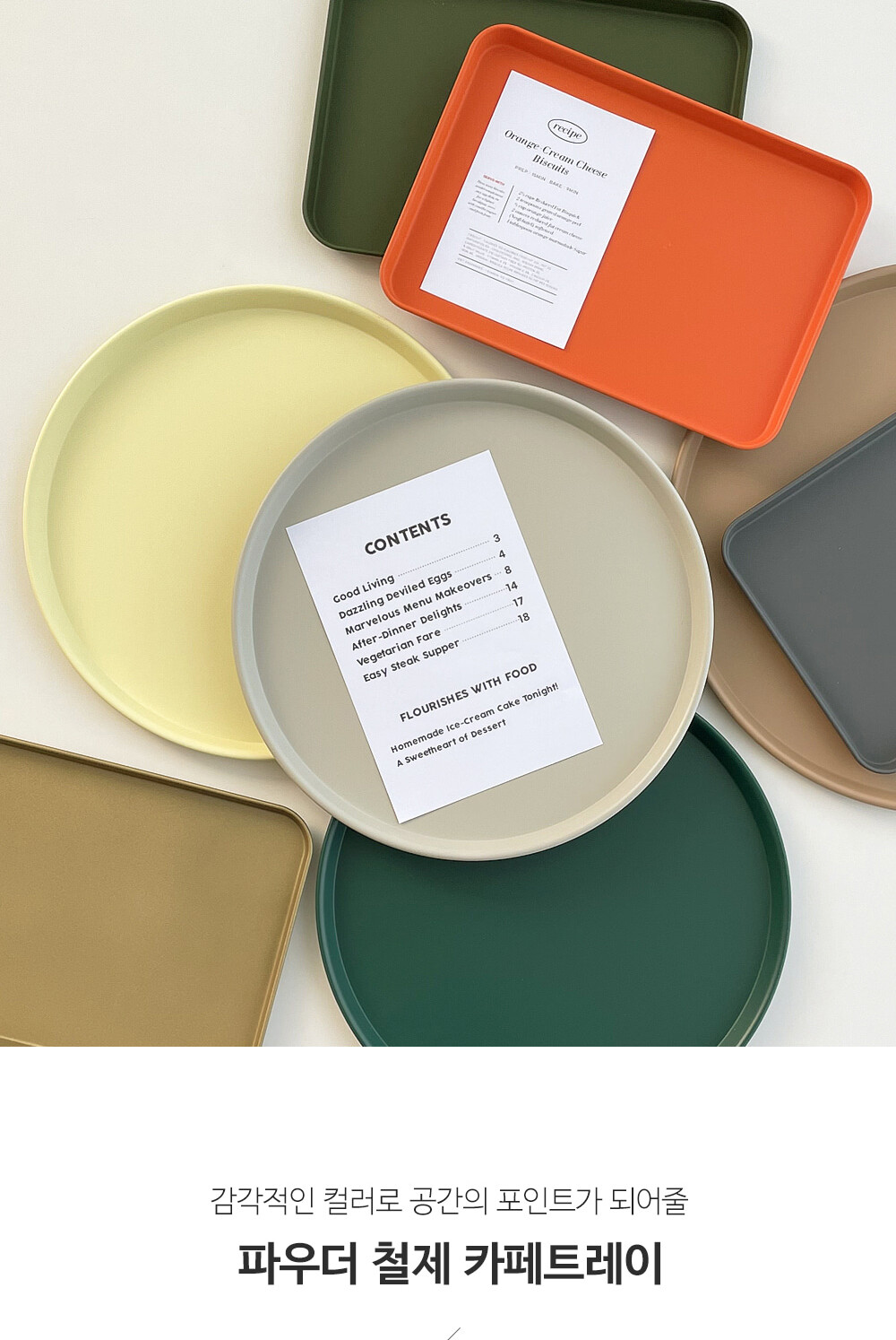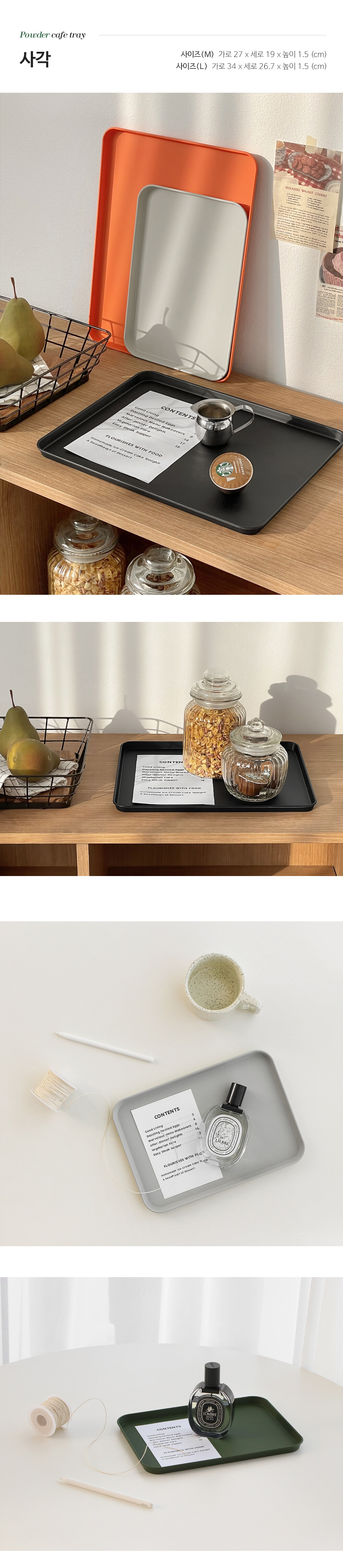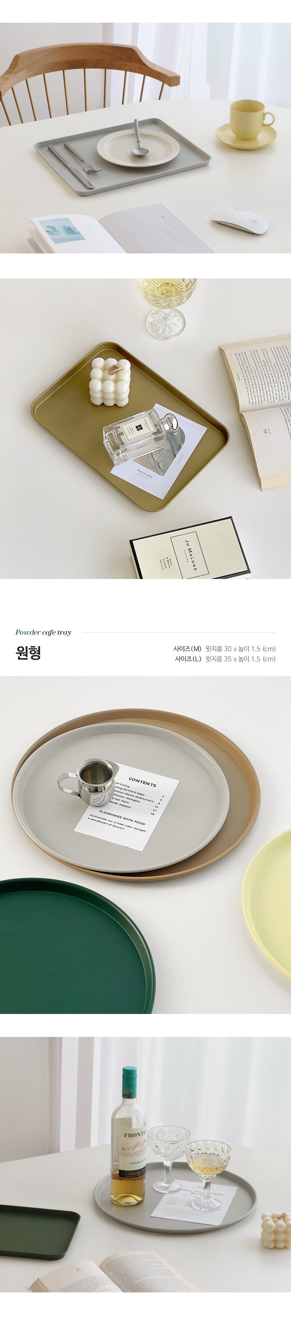 파우더 철제 논슬립 카페트레이 사각 원형 무광 메탈쟁반