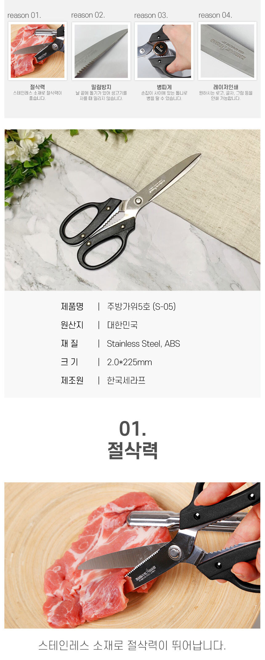 벅칼 주방 가위 5호 스텐 업소용 삼겹살 고기 생선 요리 음식 식당 고깃집