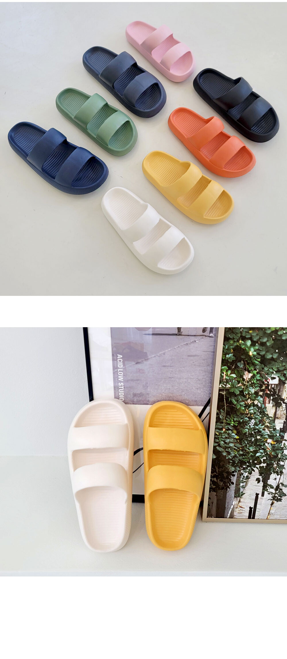 리빙안 발편한 푹신한슬리퍼 여름 병원 캠핑 사무실 투스트랩 쿠션 슬리퍼