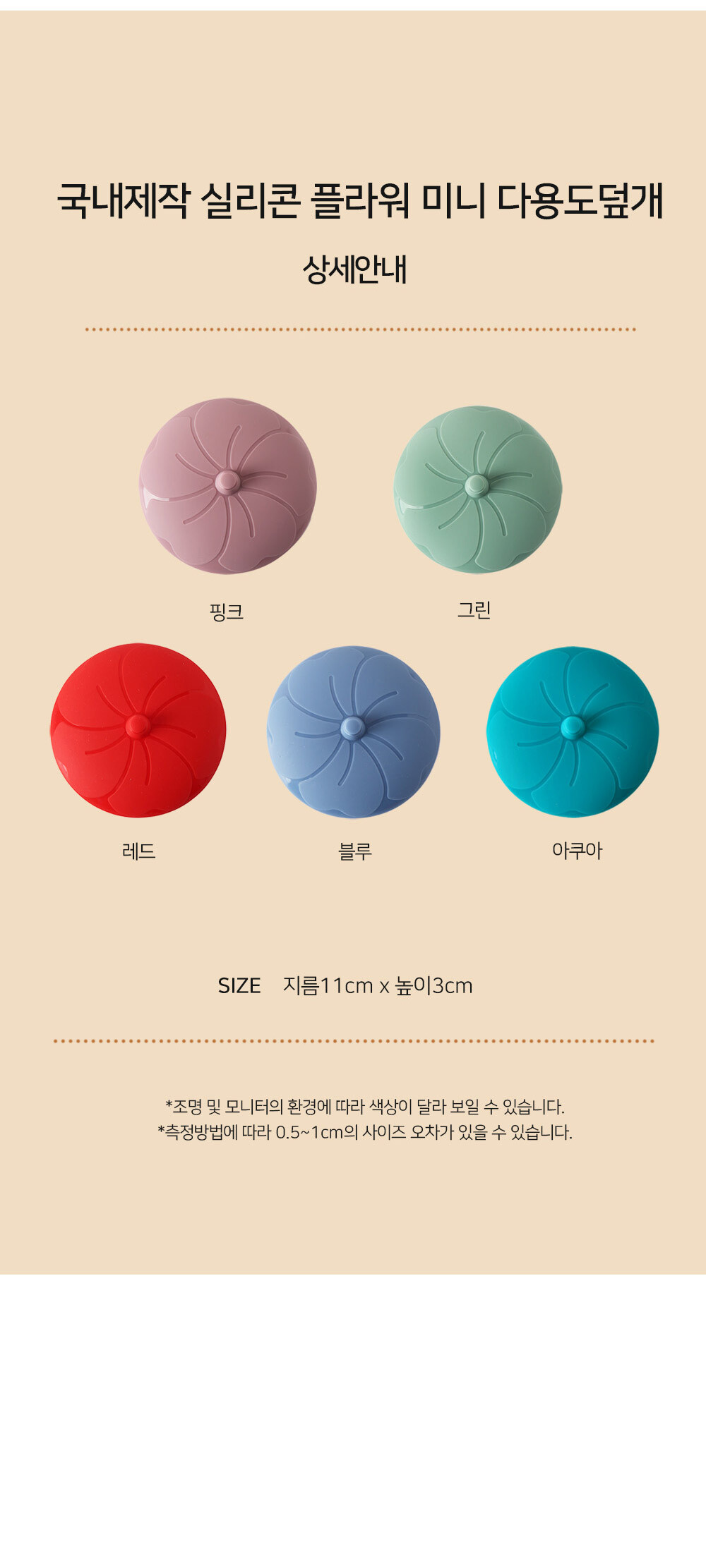 국내제작 실리콘 미니 다용도덮개 컵뚜껑 그릇뚜껑 11cm