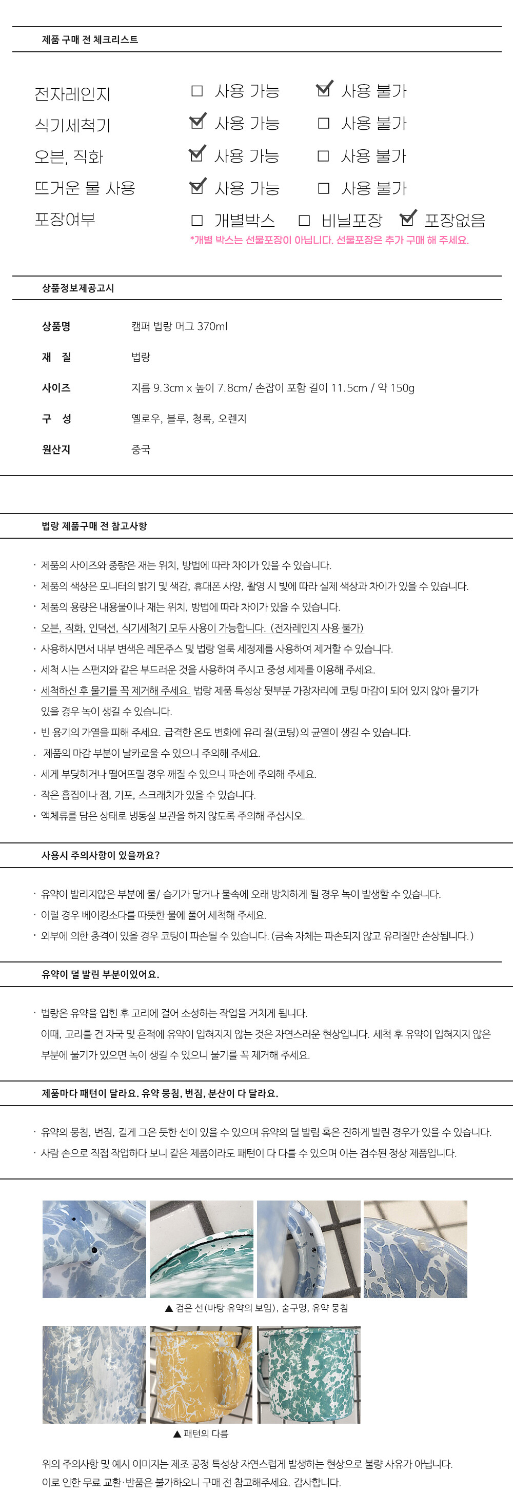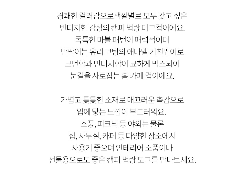 캠퍼 마블 법랑 머그컵 애나멜 캠핑컵 홈카페 370ml
