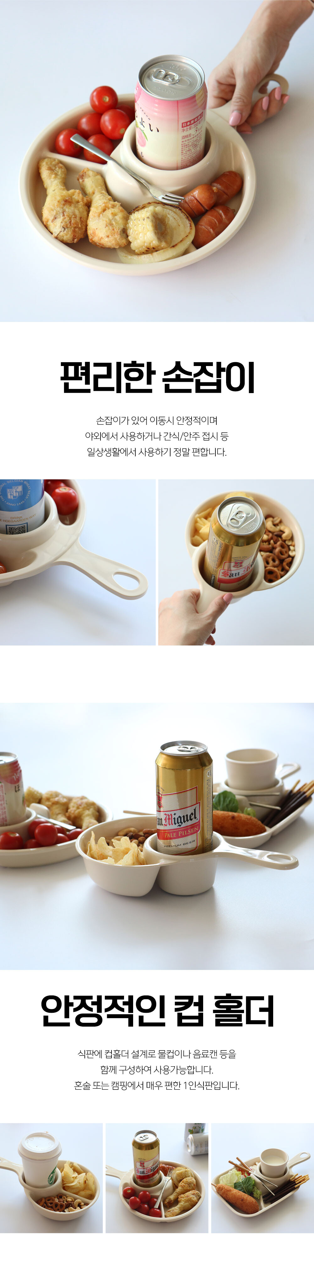 손잡이 혼술 간식 안주 캠핑 트레이 나눔식판