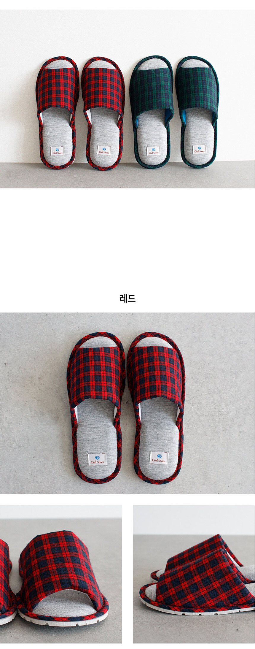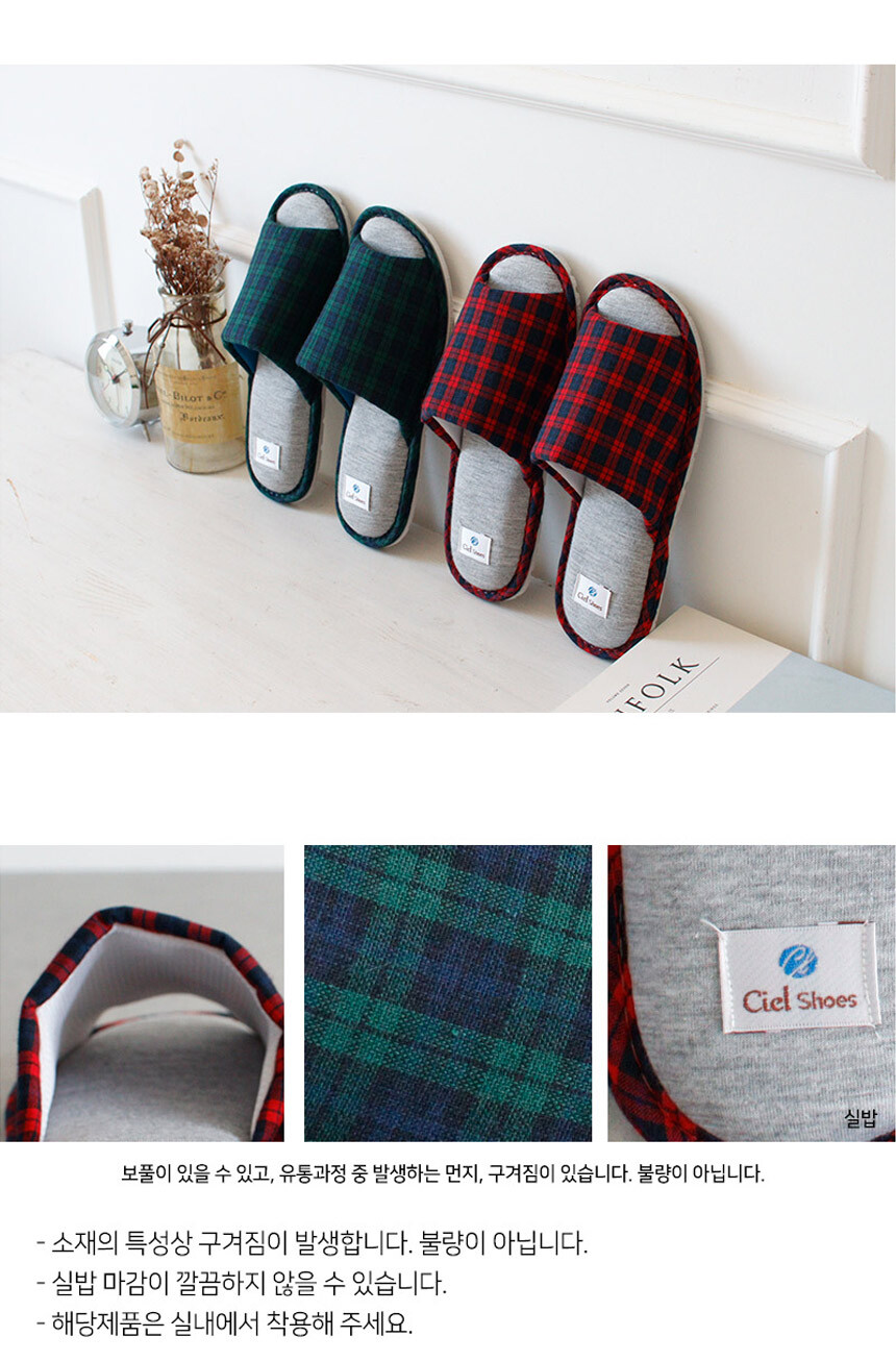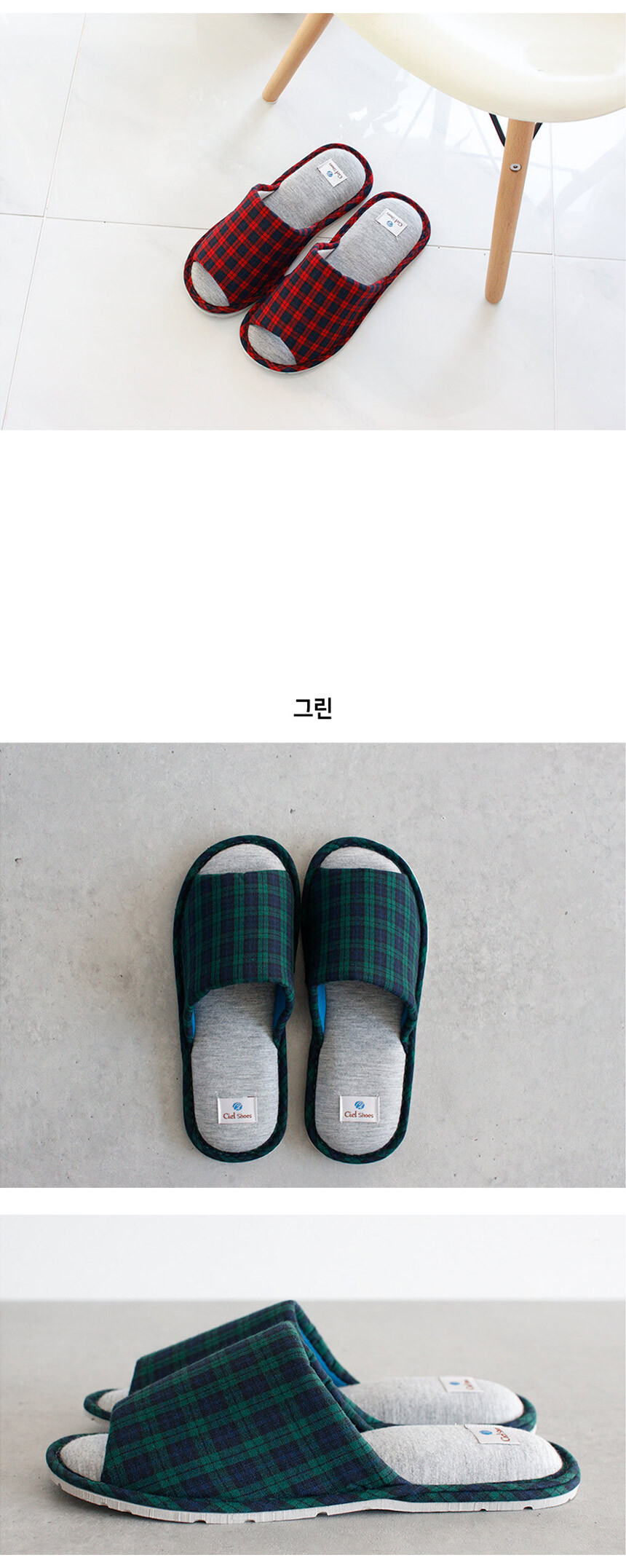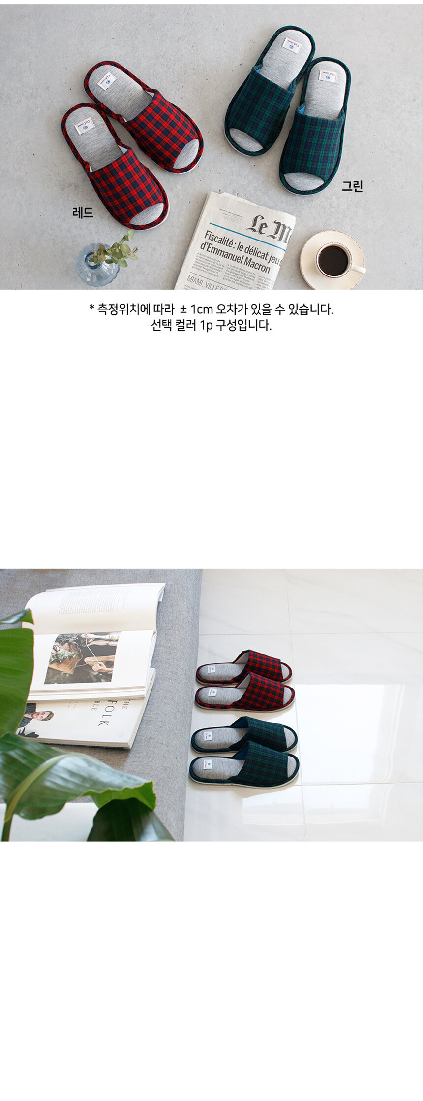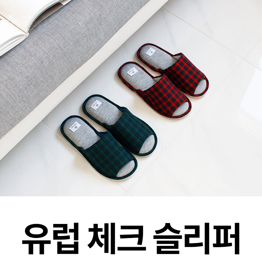 리빙안 유럽 체크 슬리퍼 거실 실내화