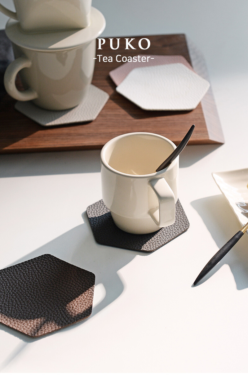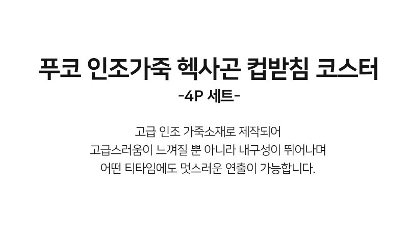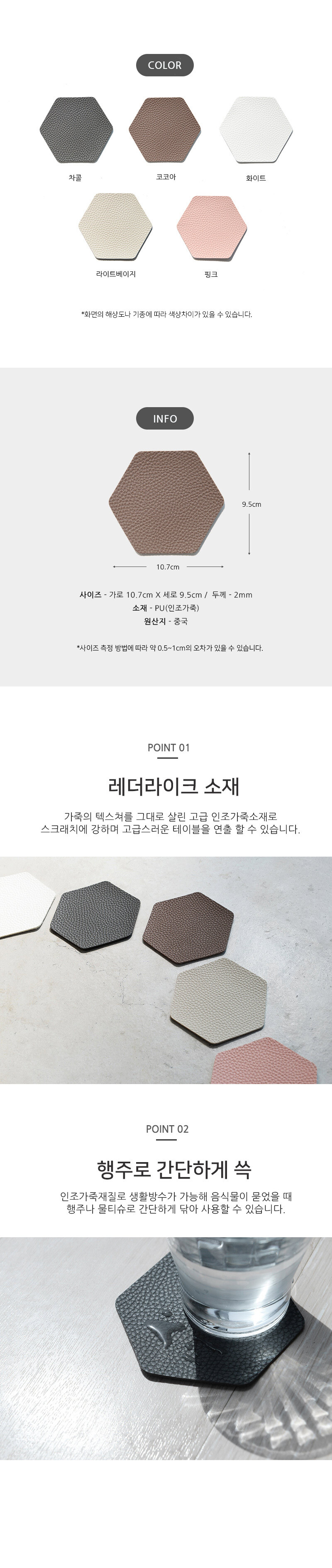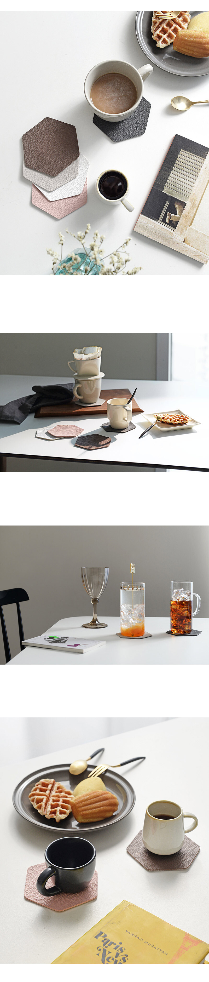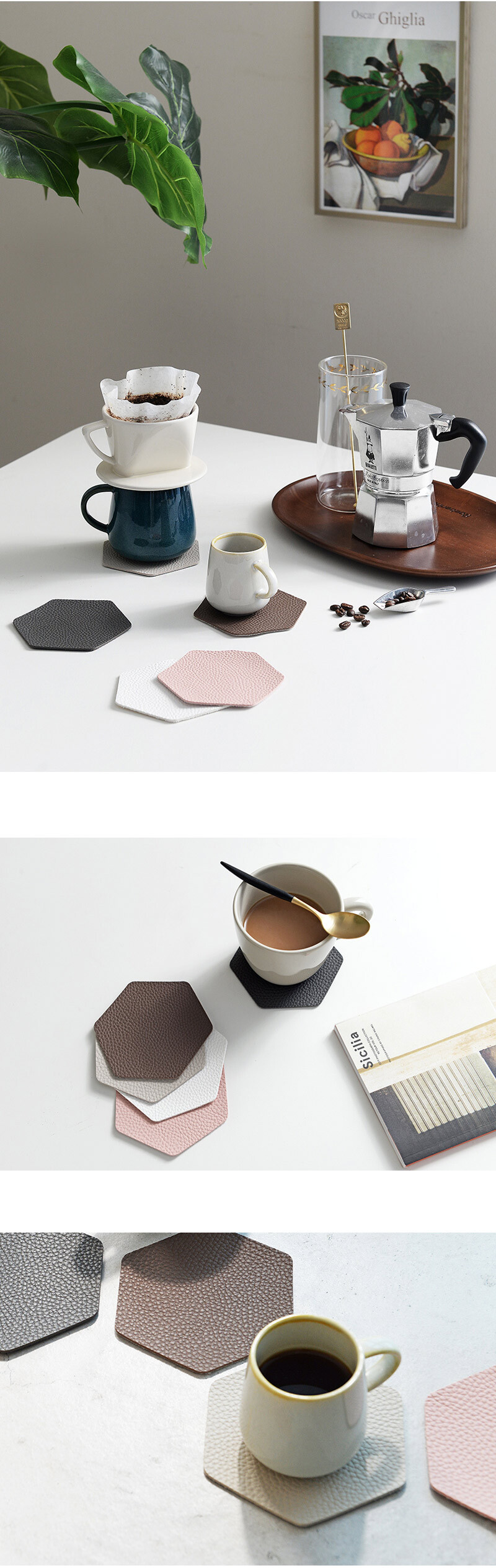 인조가죽 헥사곤 컵받침 코스터 4개세트