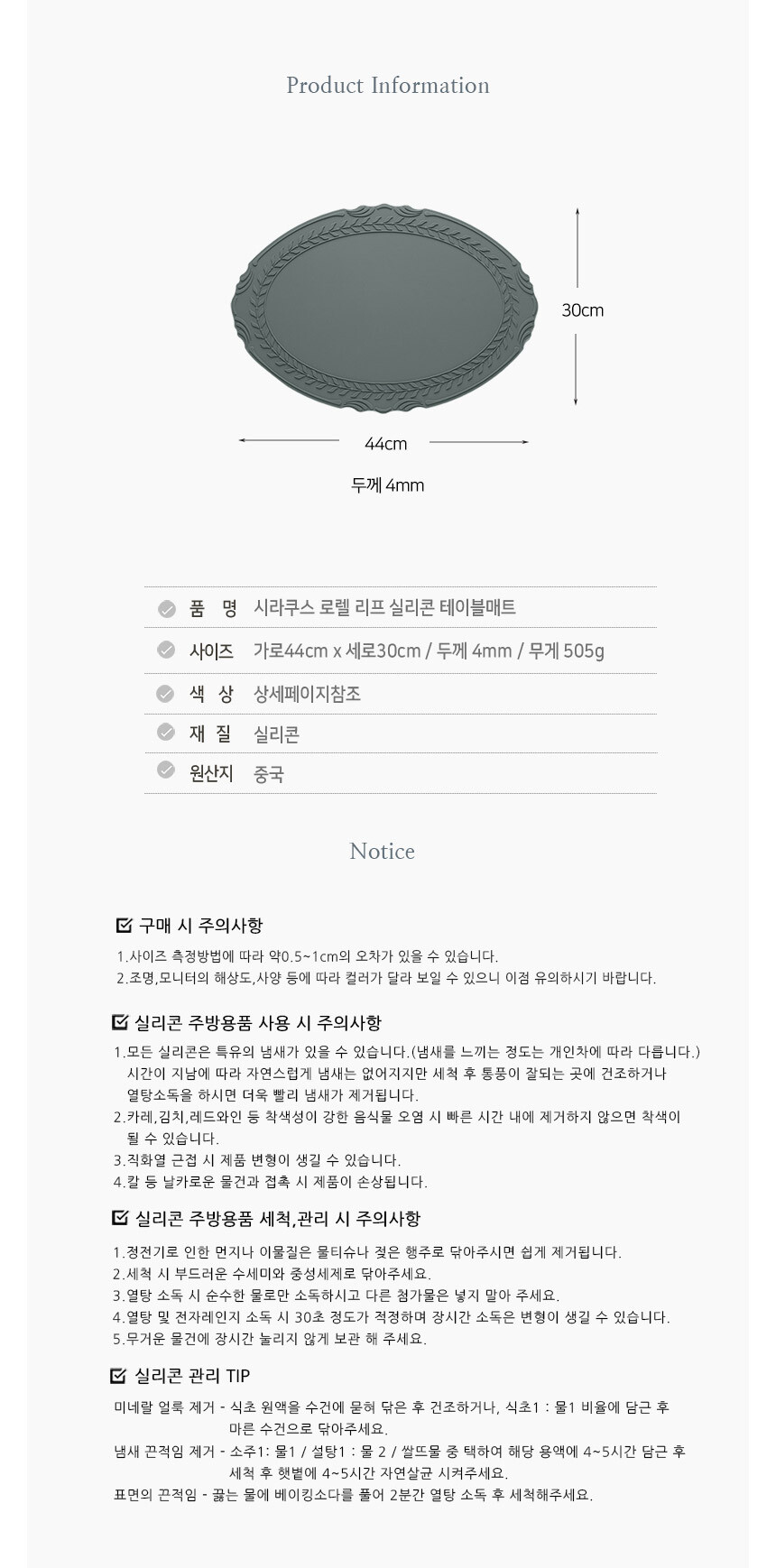 시라쿠스 로렐 리프 실리콘 테이블매트 타원형