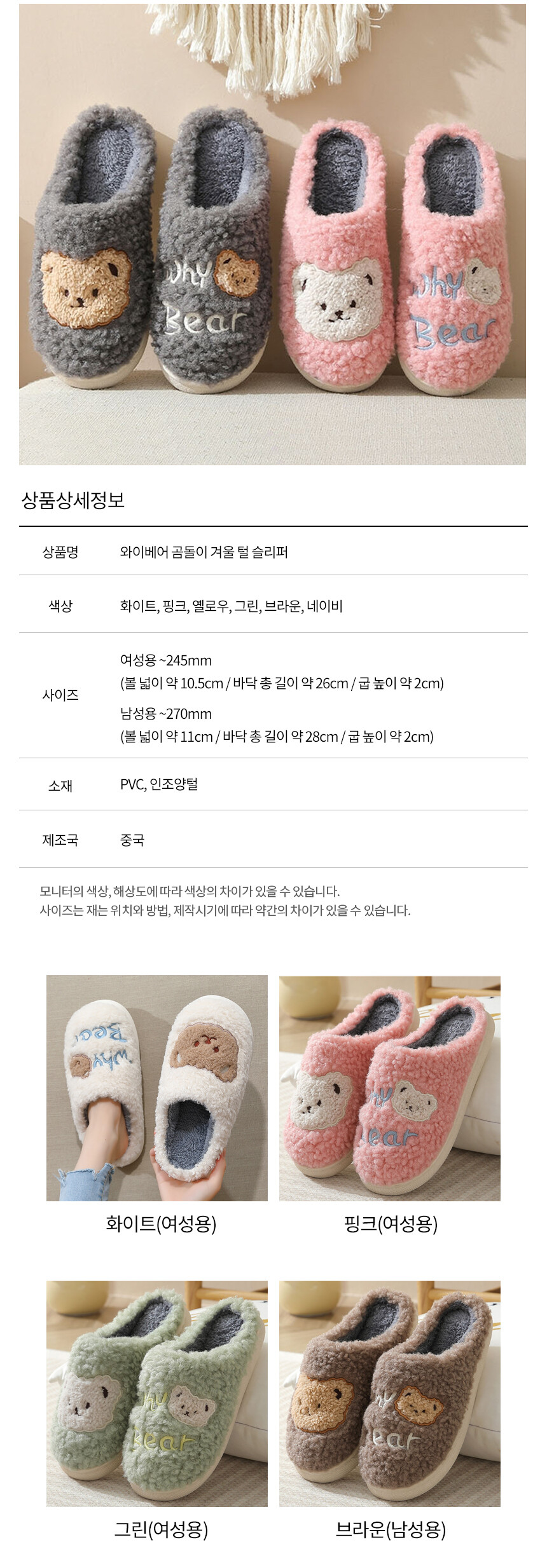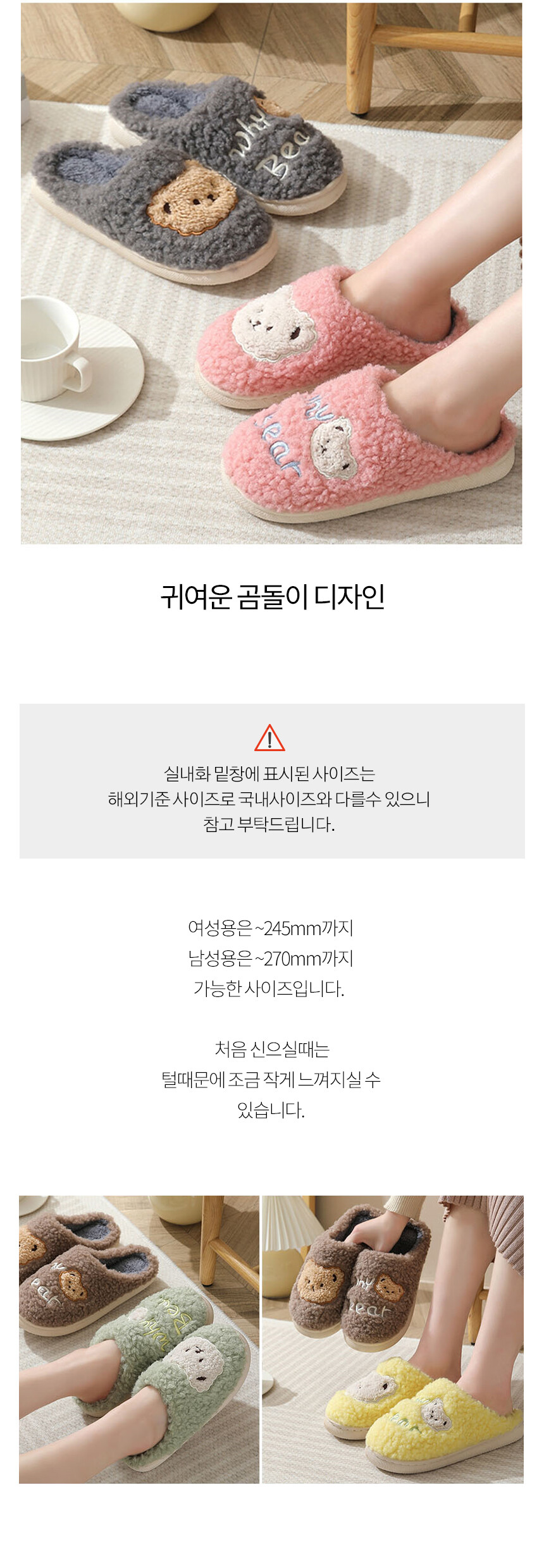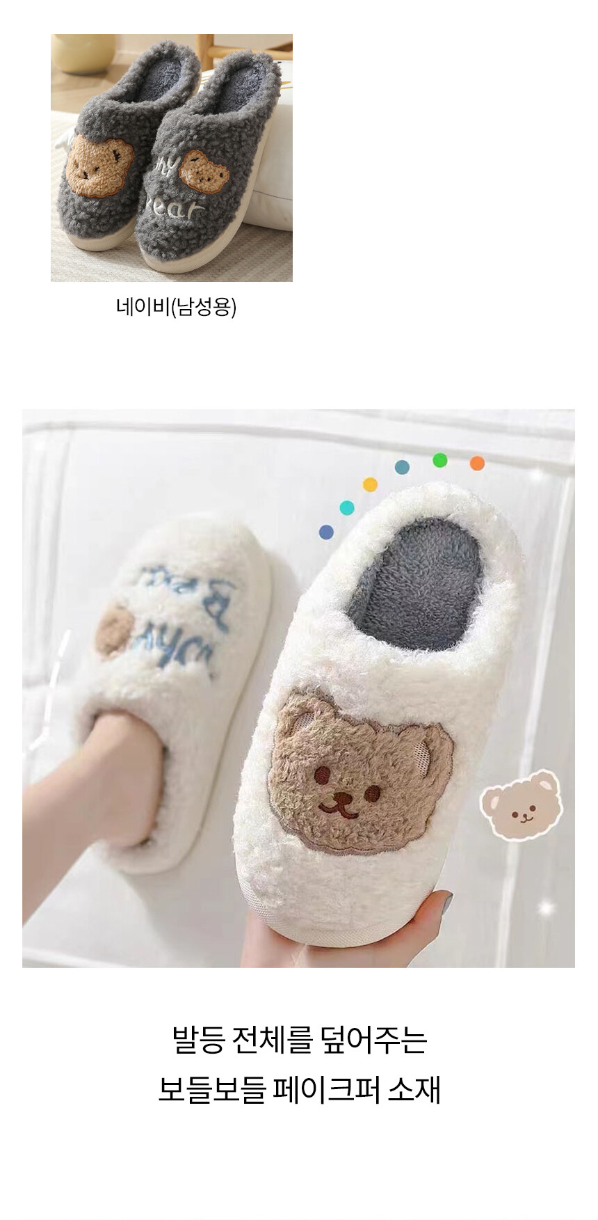 리빙안 겨울 방한 와이베어 곰돌이 털 슬리퍼