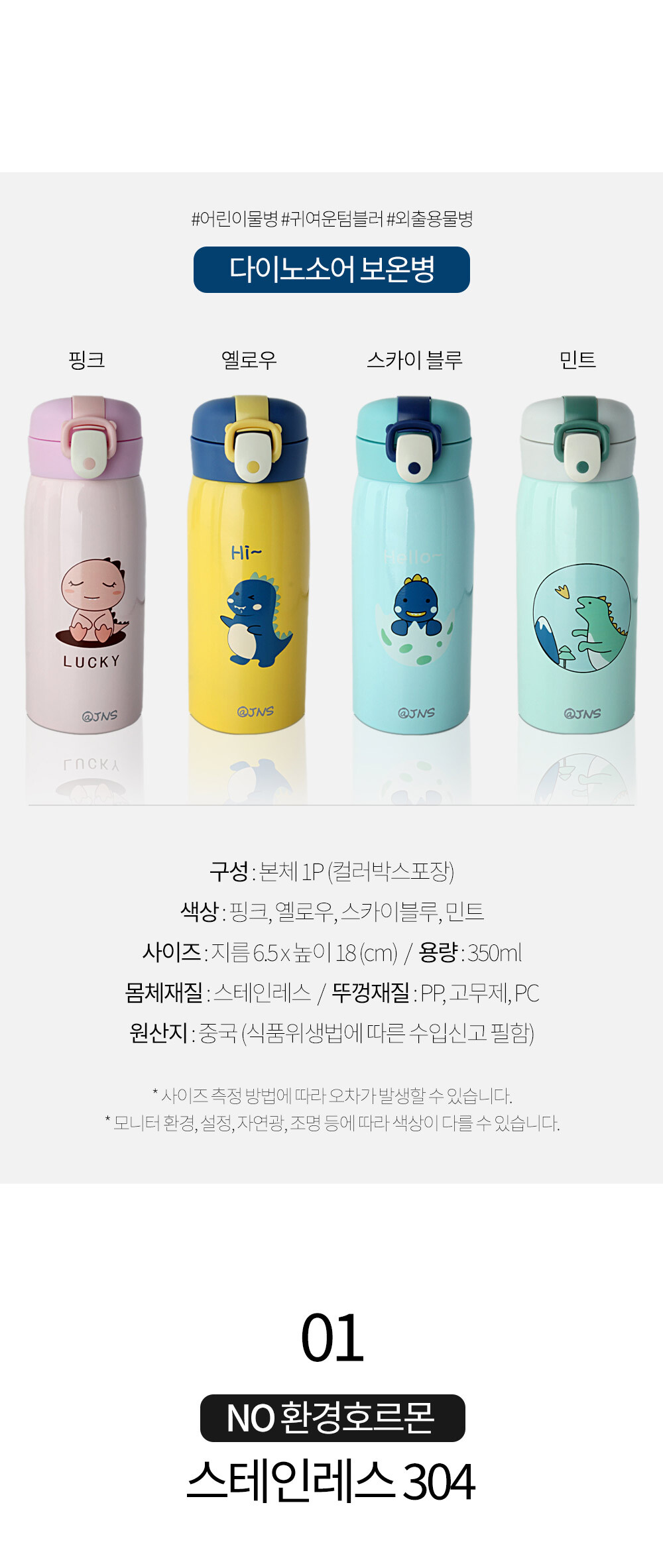 리빙안 다이노소어 원터치 보온 보냉 유아 어린이 유치원 물병