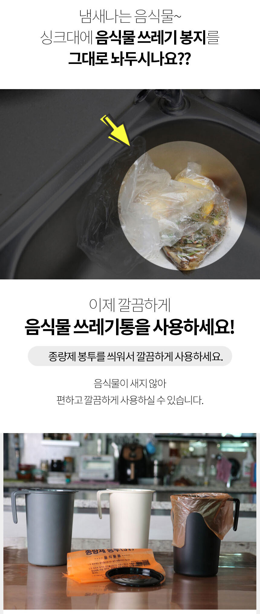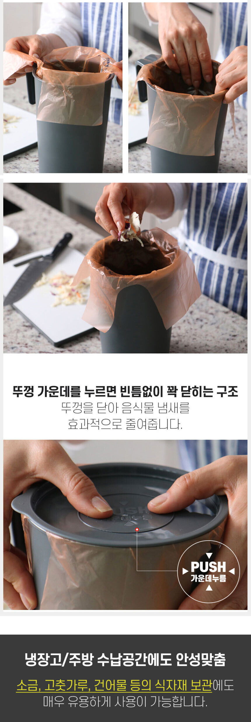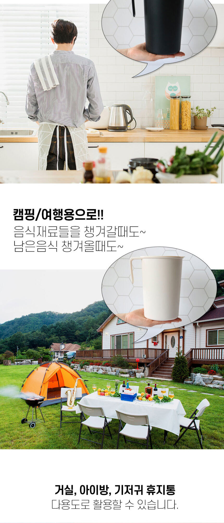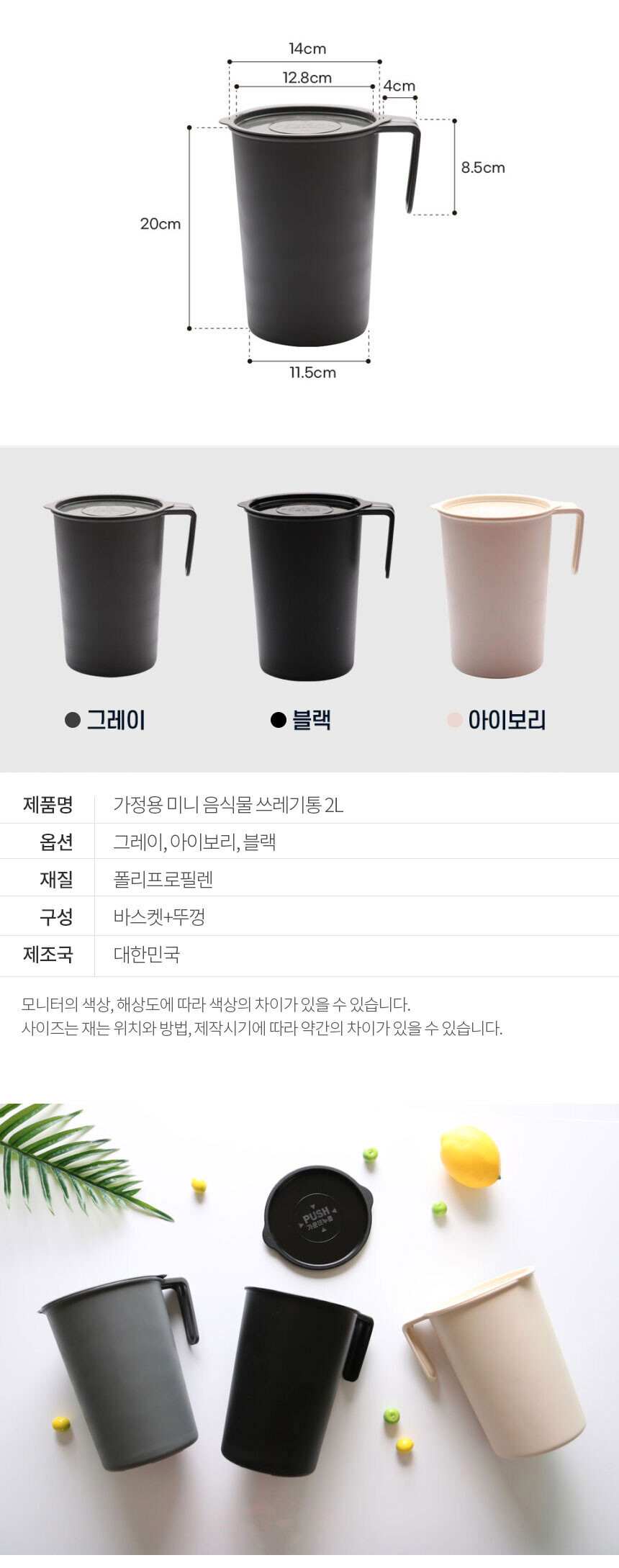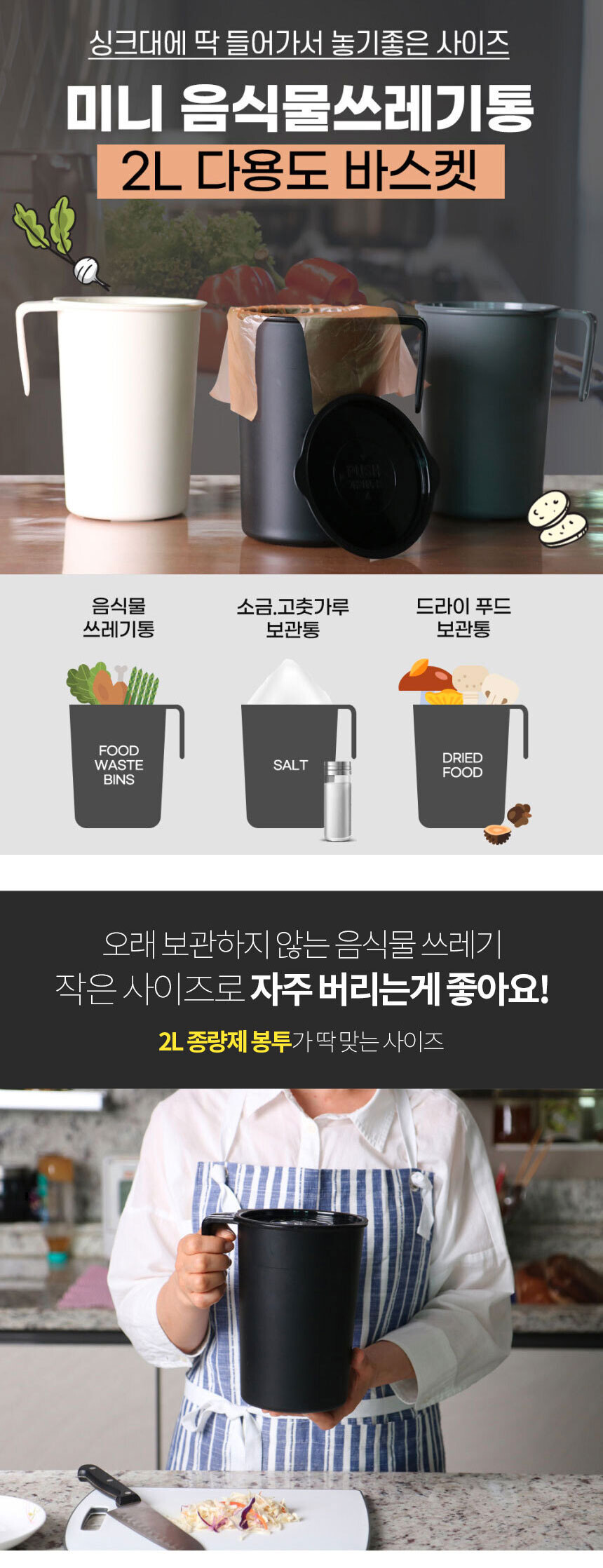 리빙안 미니 소형 손잡이 휴지통 음식물쓰레기통 2L
