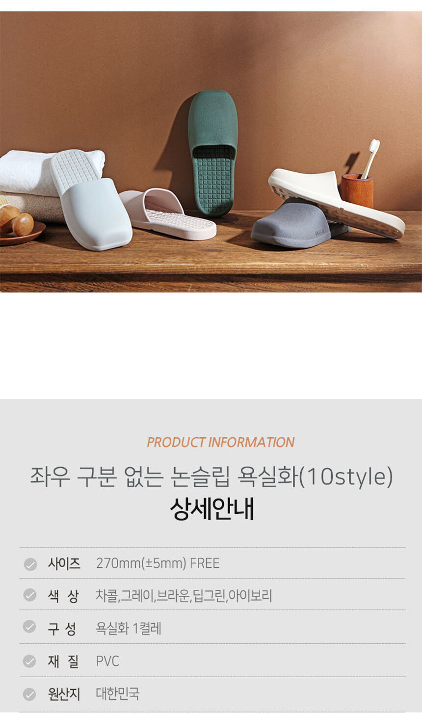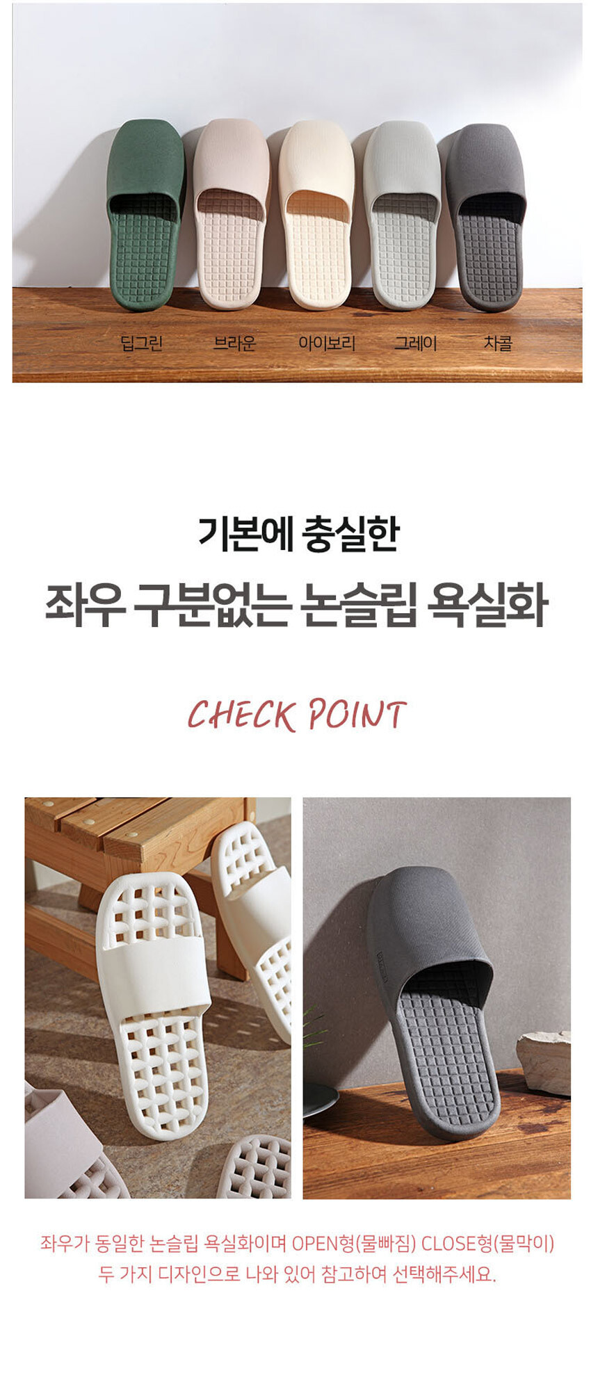 리빙안 좌우 구분없는 논슬립 욕실화 오픈형