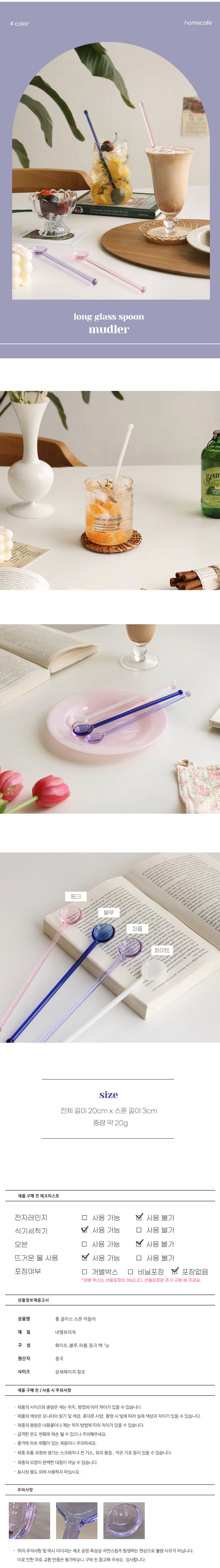 롱 스푼 내열유리 머들러