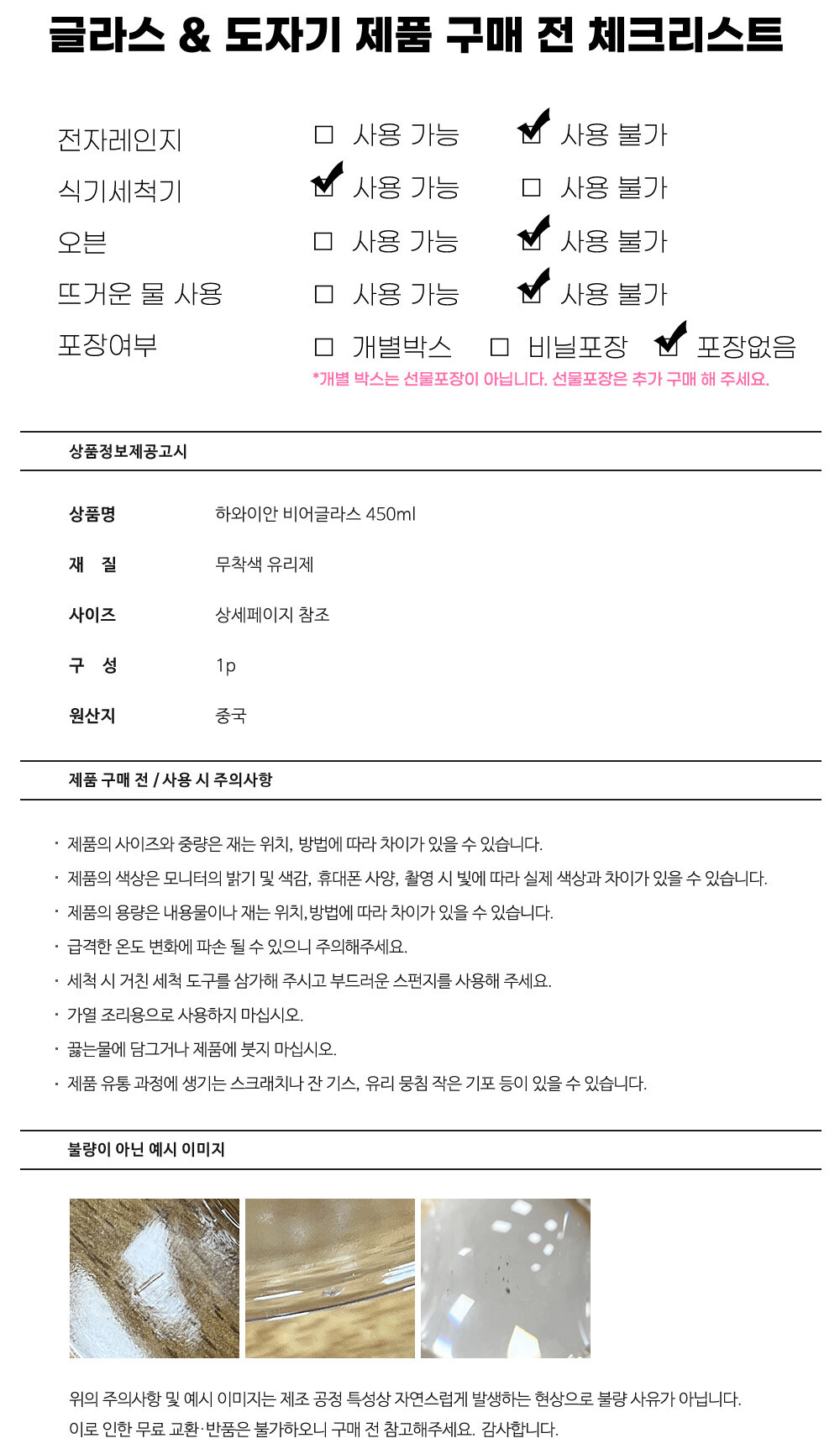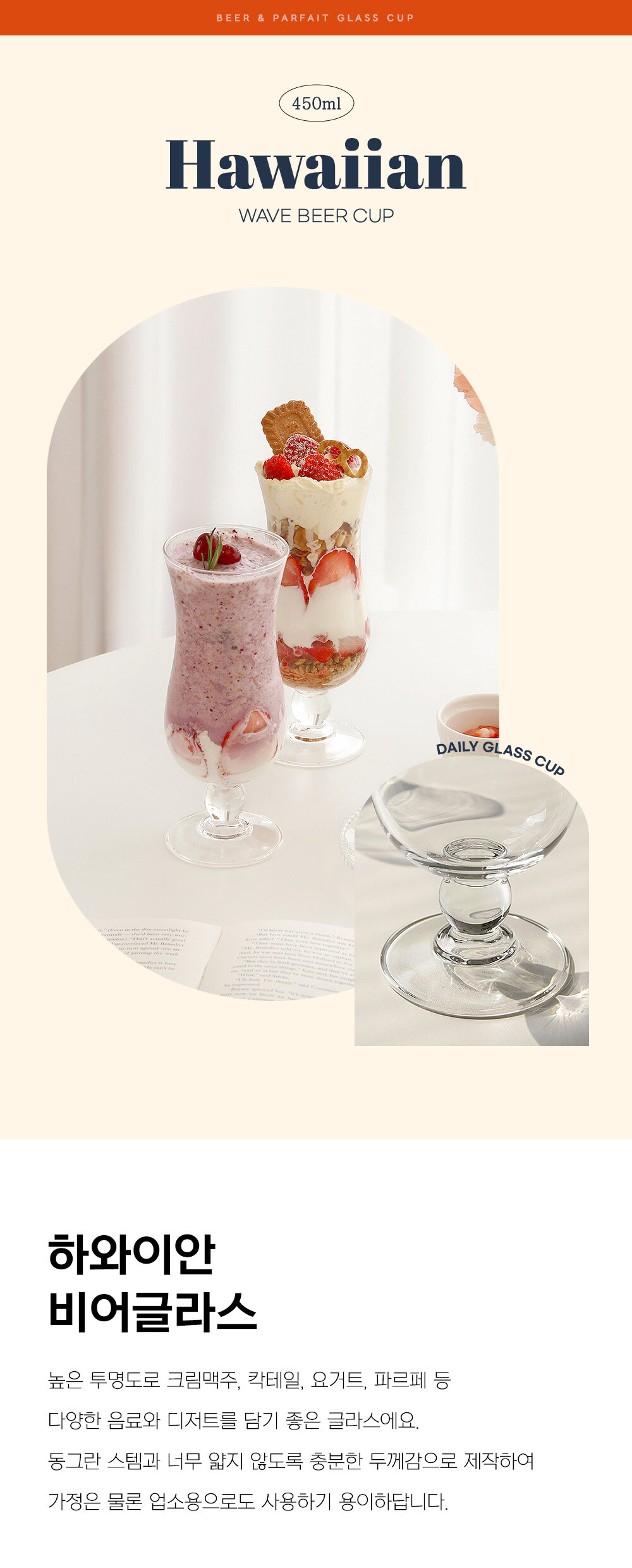 하와이안 비어글라스 파르페잔 450ml 홈카페 업소용 맥주잔