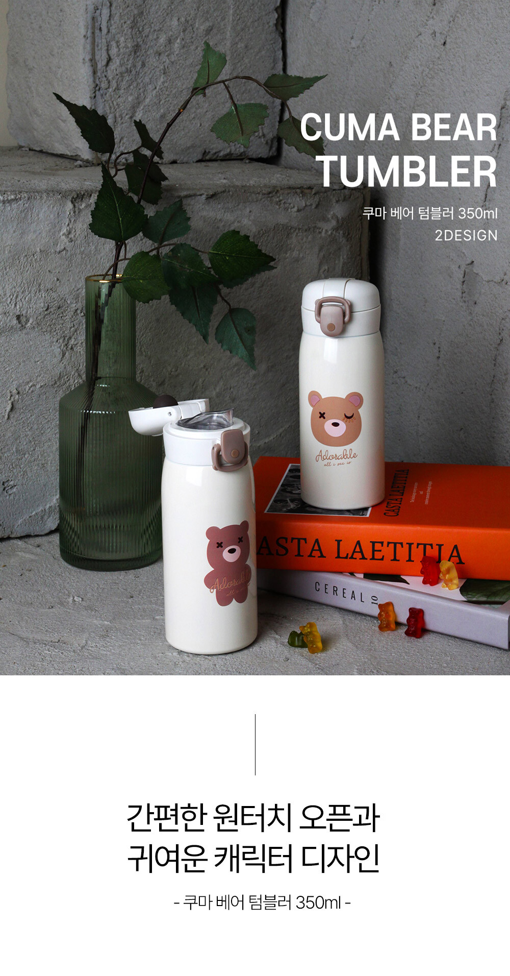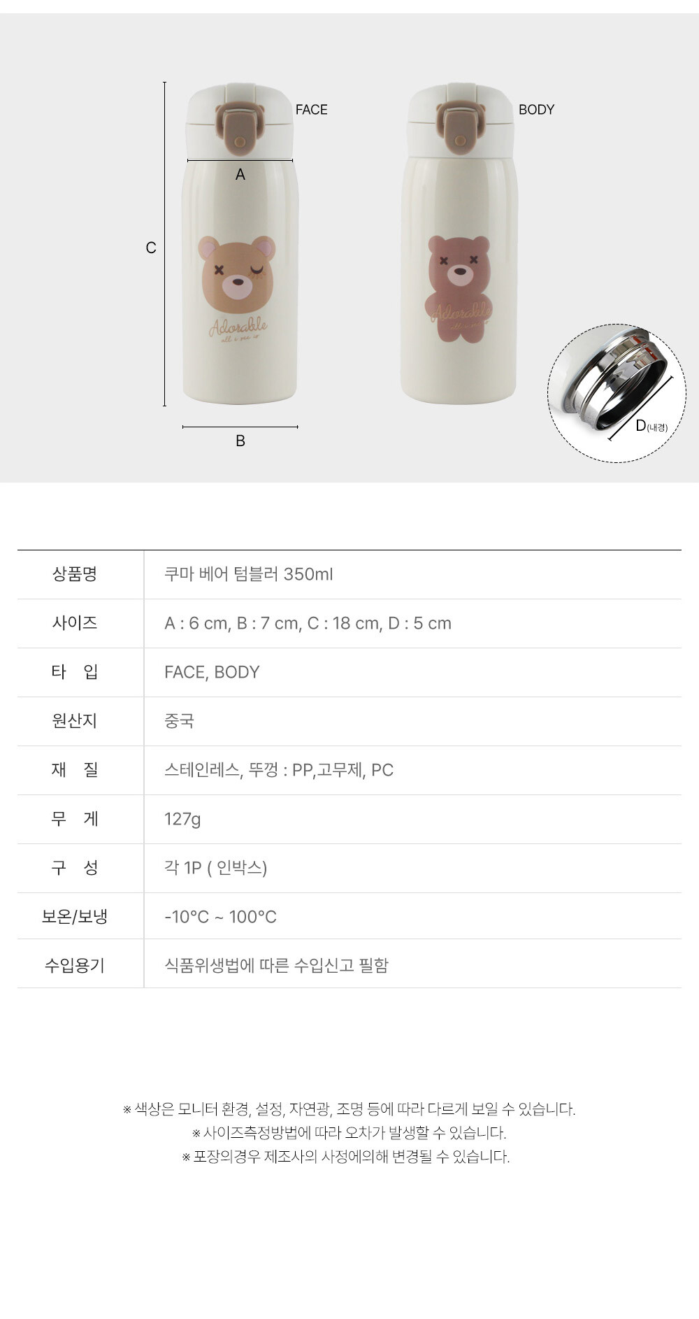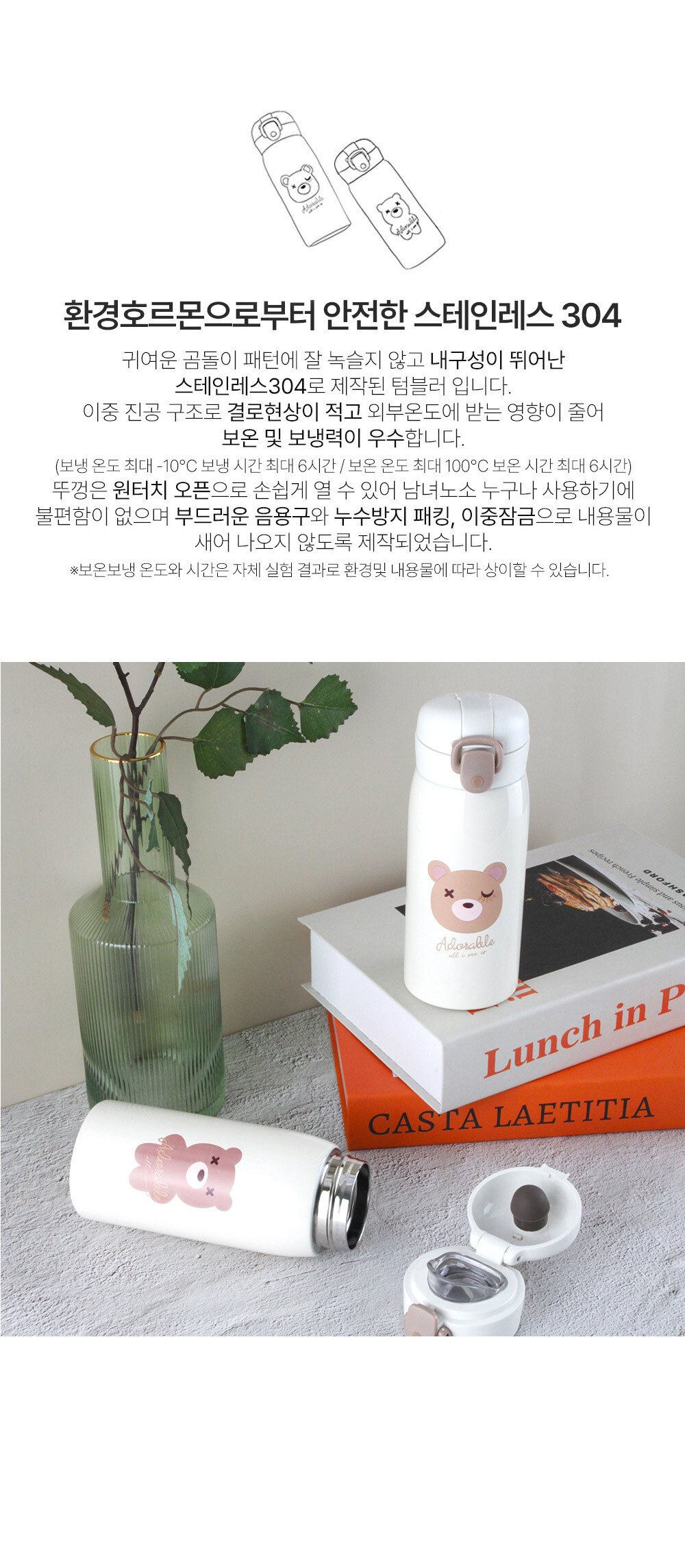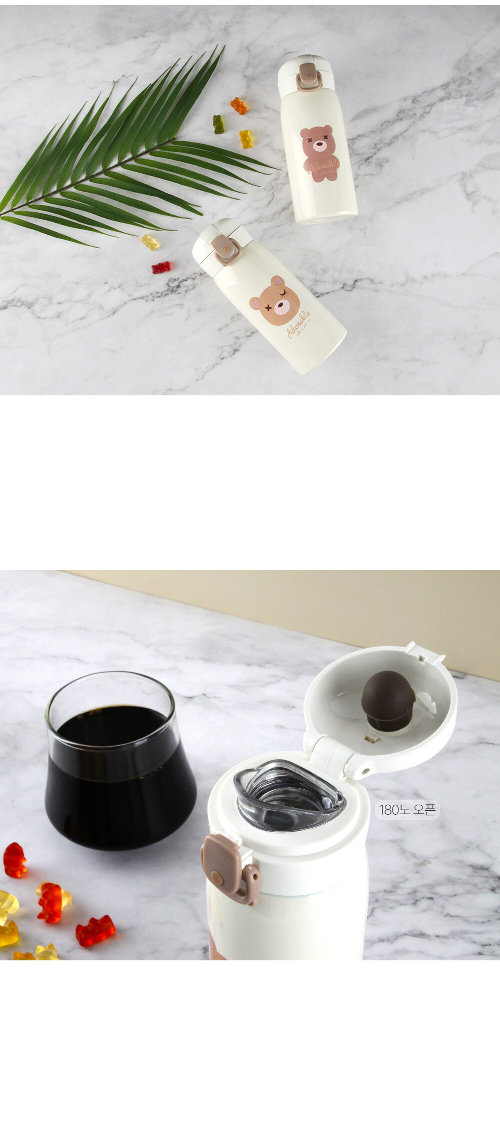 쿠마 베어 보온병 350ml 보온 보냉 텀블러 원터치 어린이물병