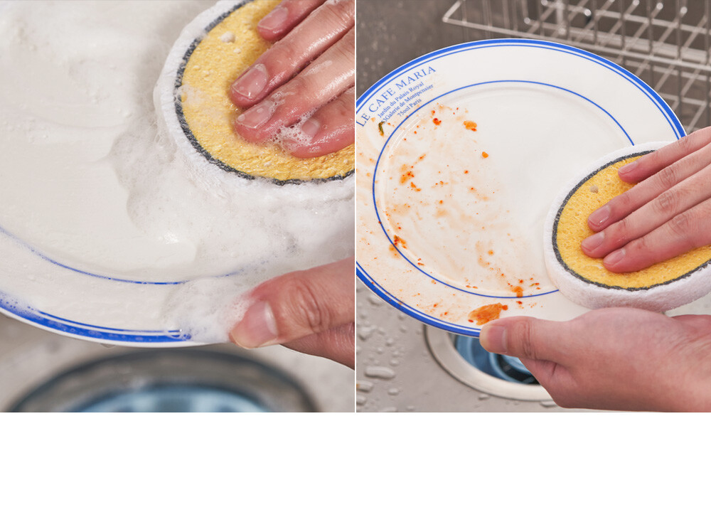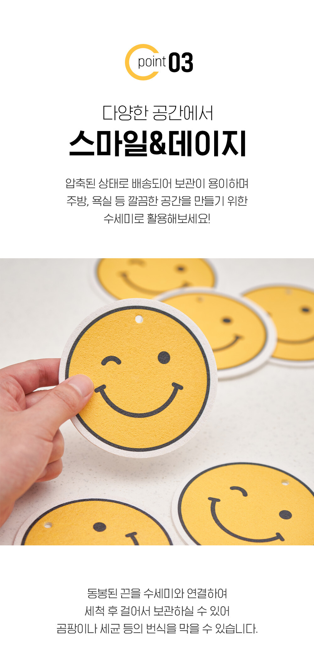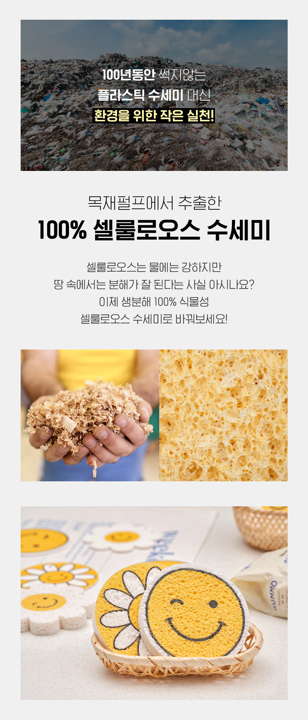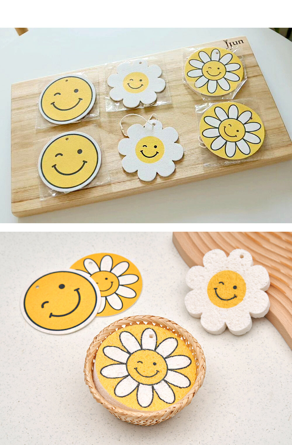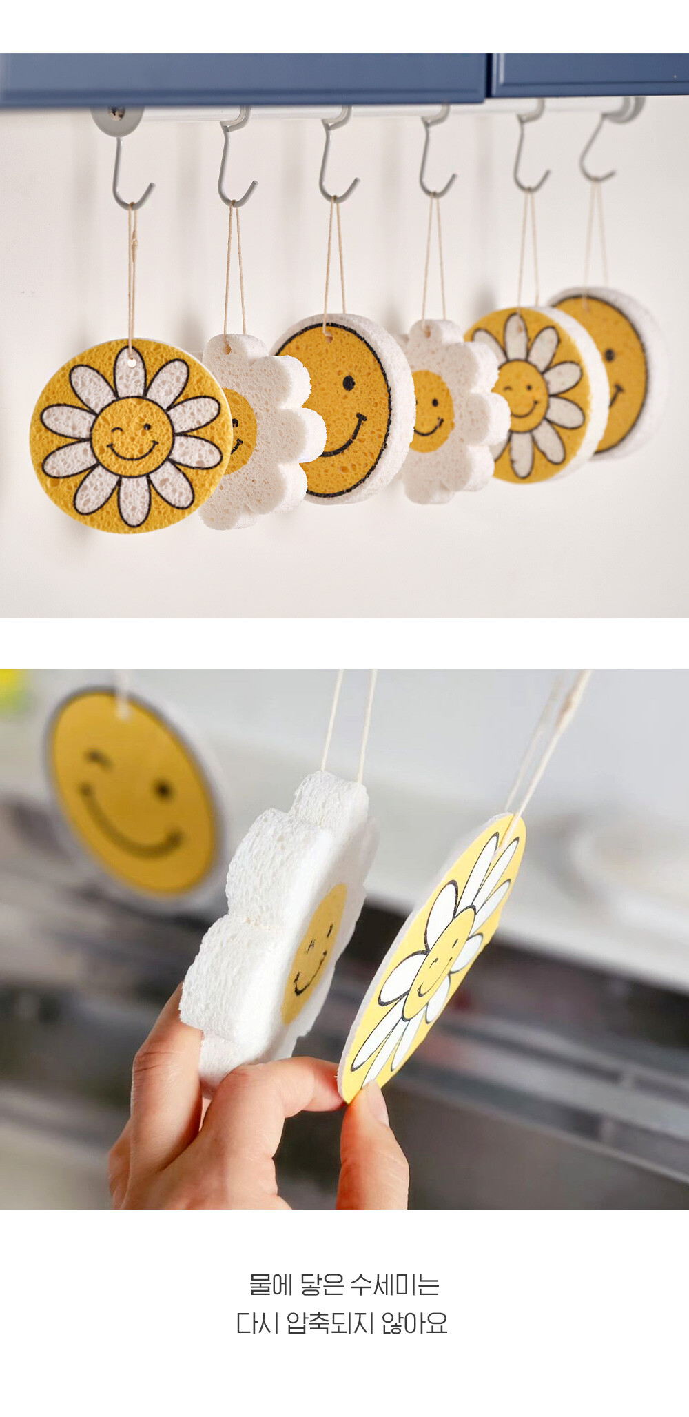 리빙안 주방 스펀지 압축 스마일 데이지 수세미 생분해 셀룰로오스