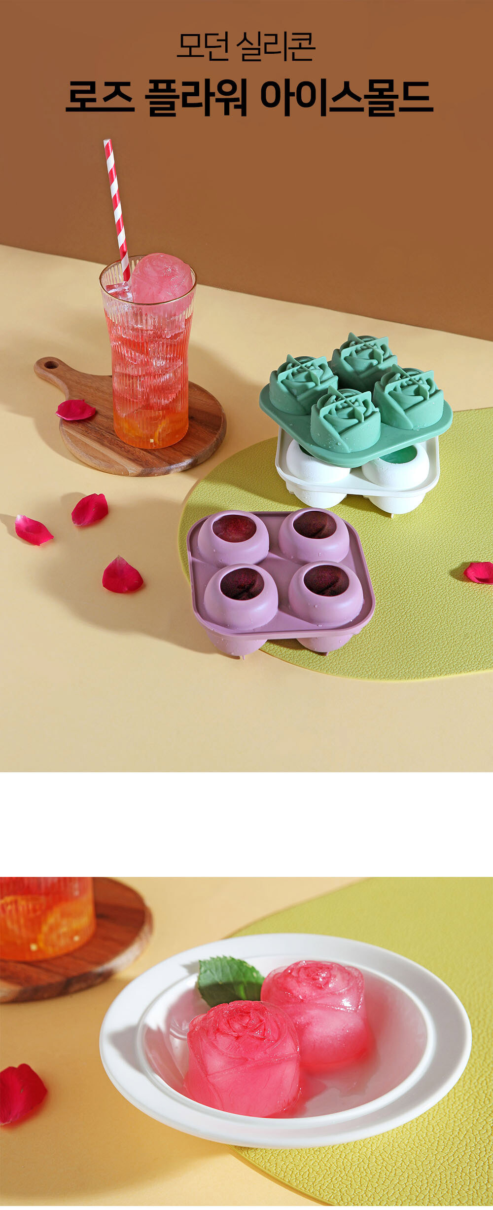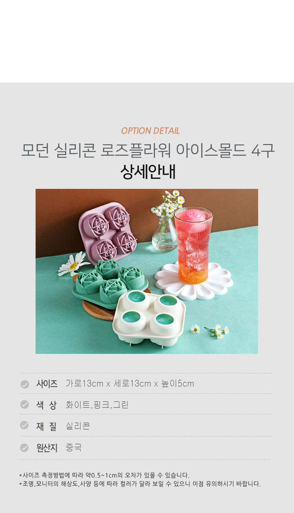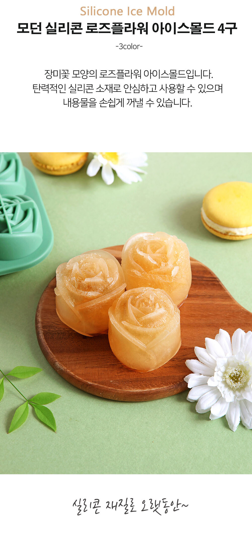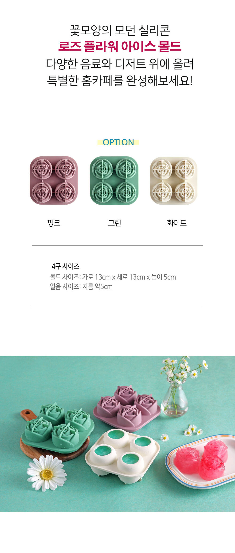 모던 실리콘 로즈플라워 아이스몰드 4구