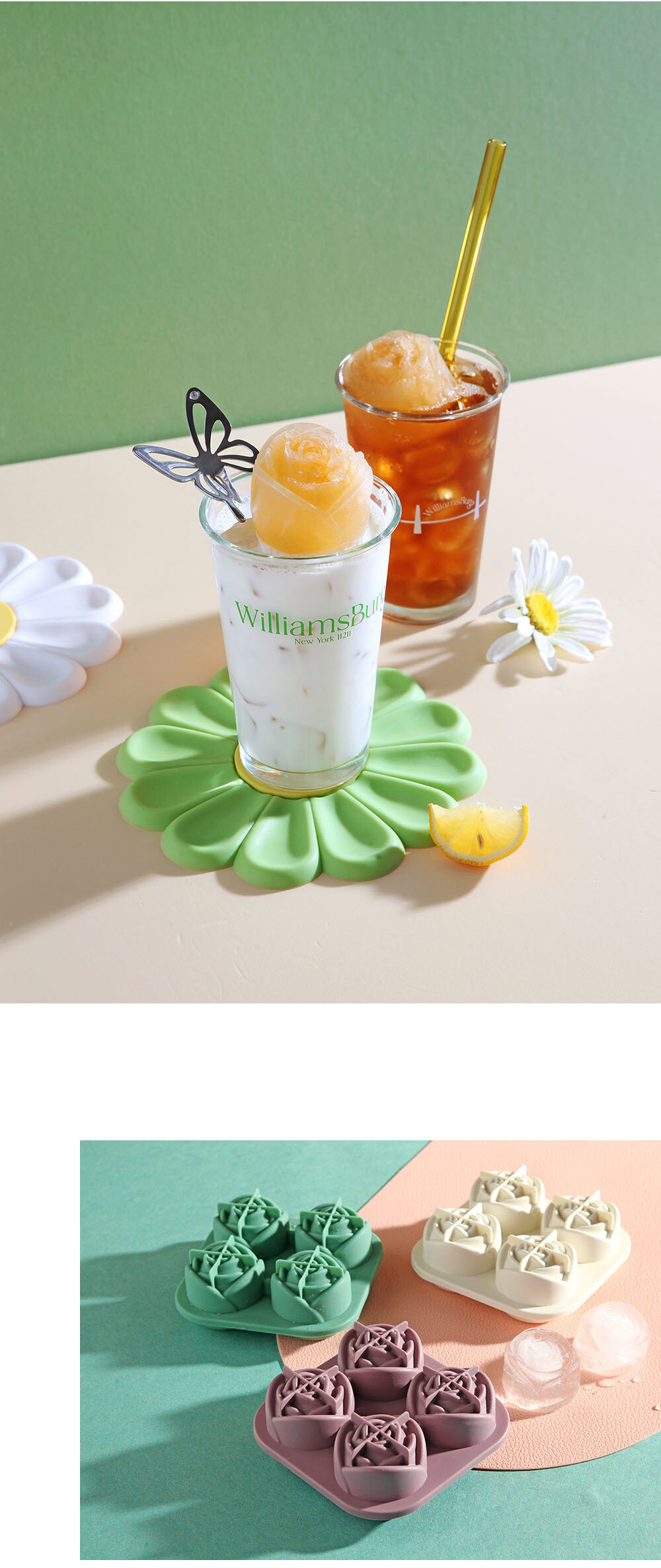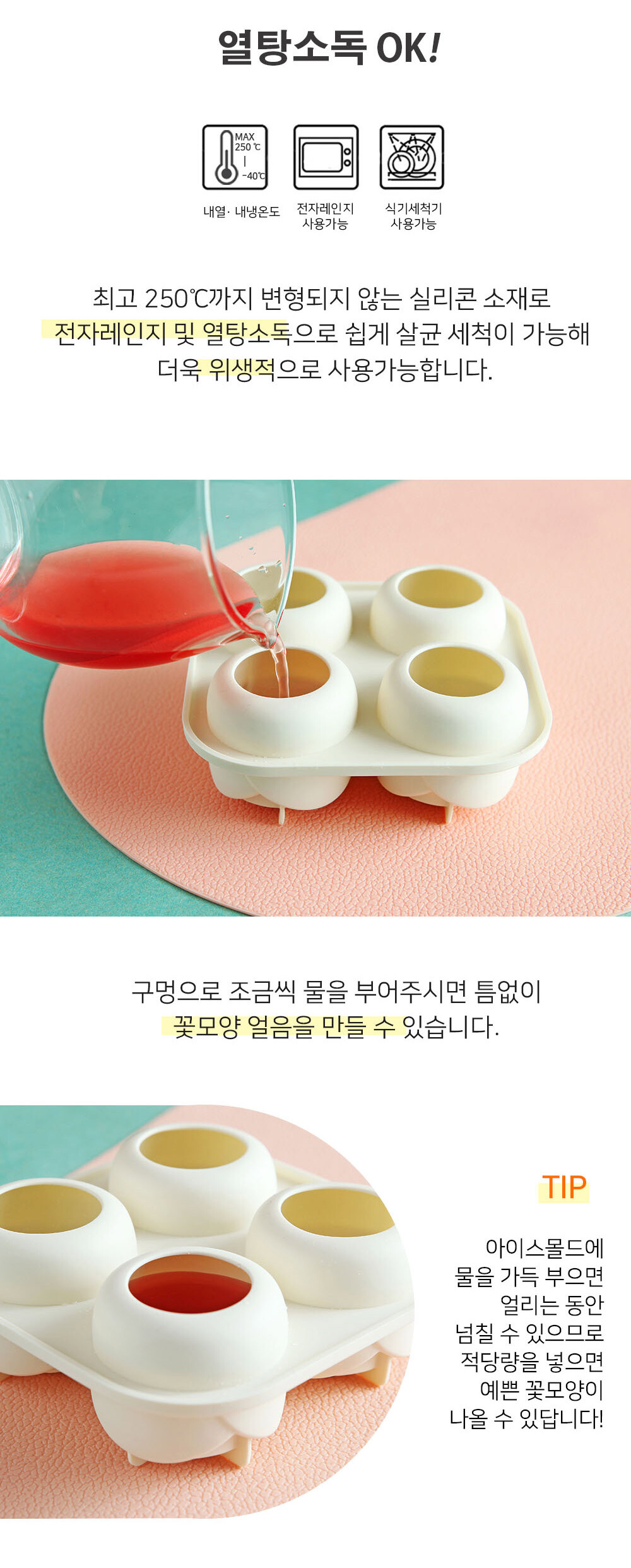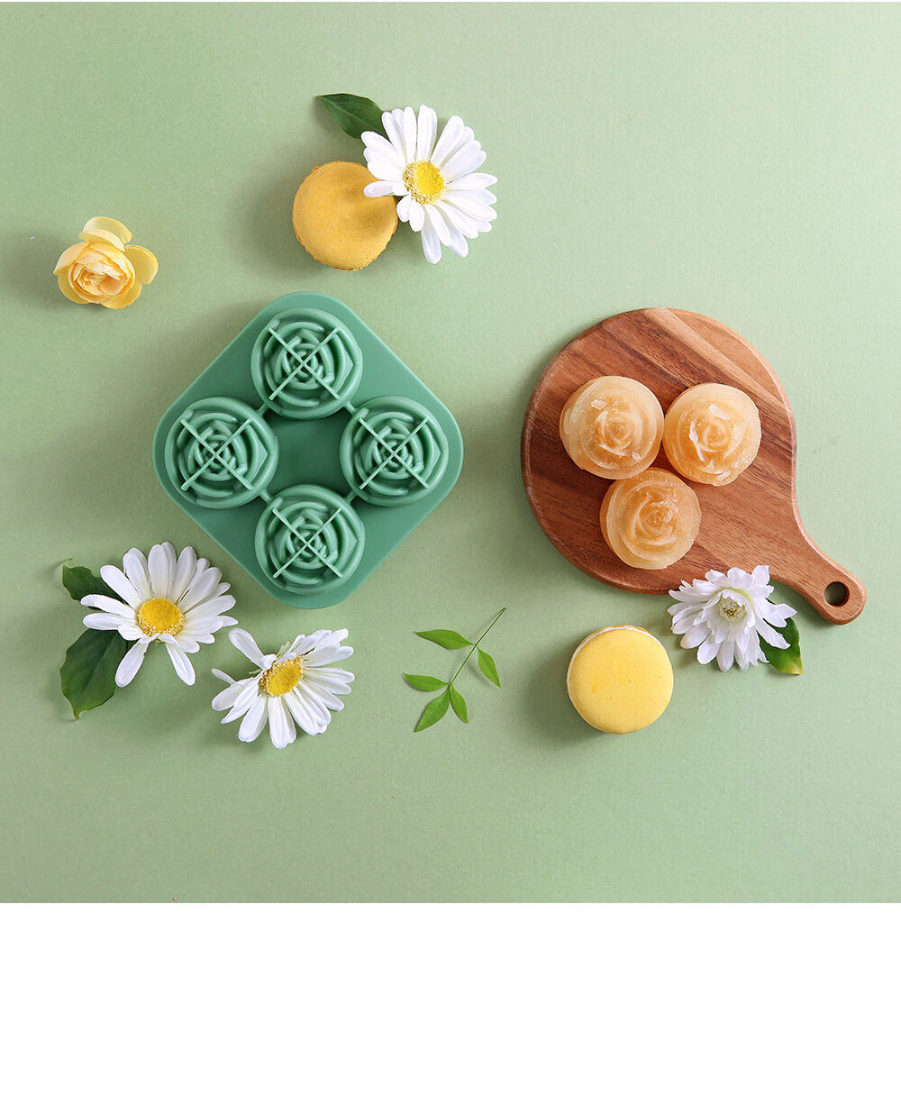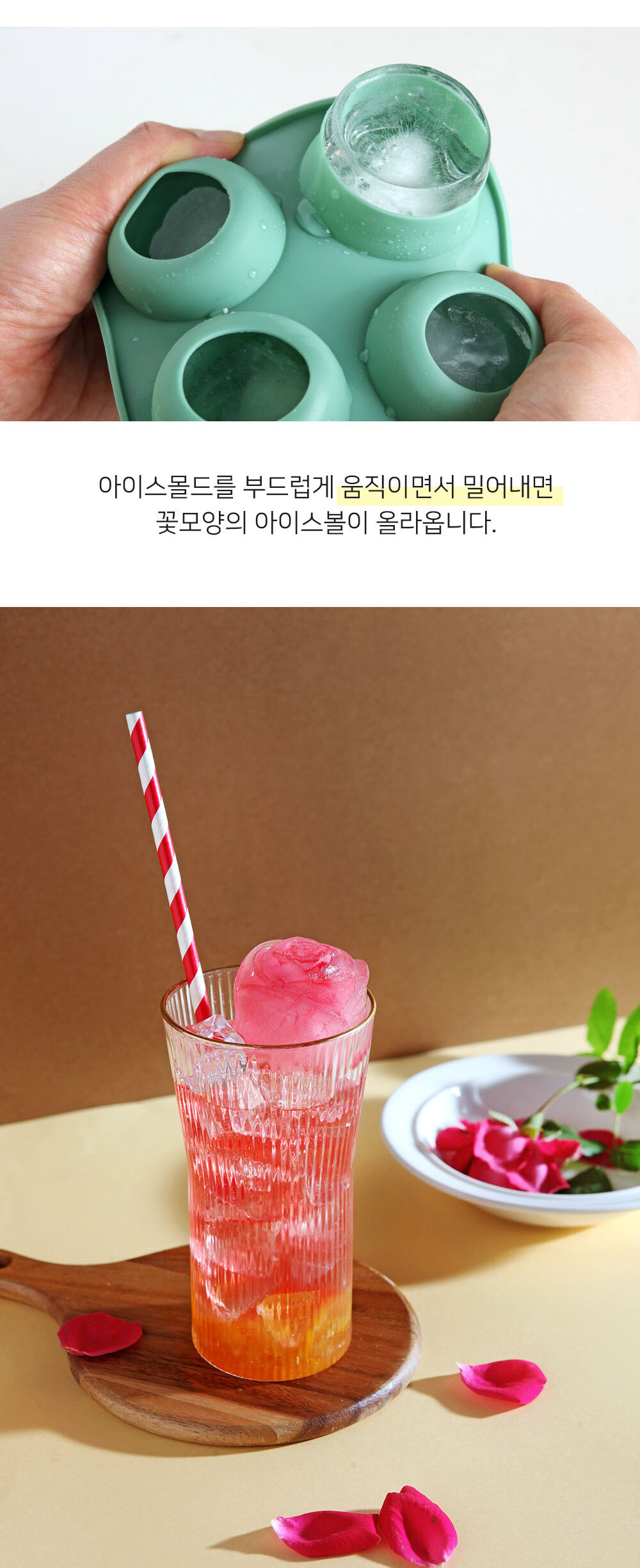 모던 실리콘 로즈플라워 아이스몰드 4구