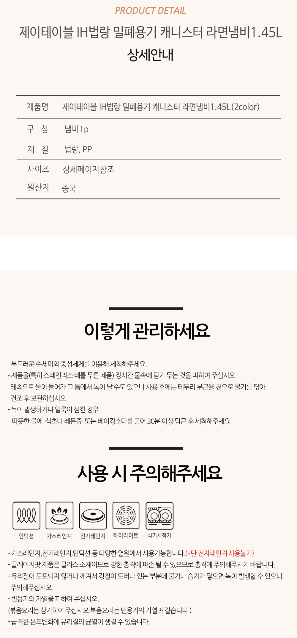 제이테이블 IH법랑 밀폐용기 캐니스터 라면냄비 1.45L