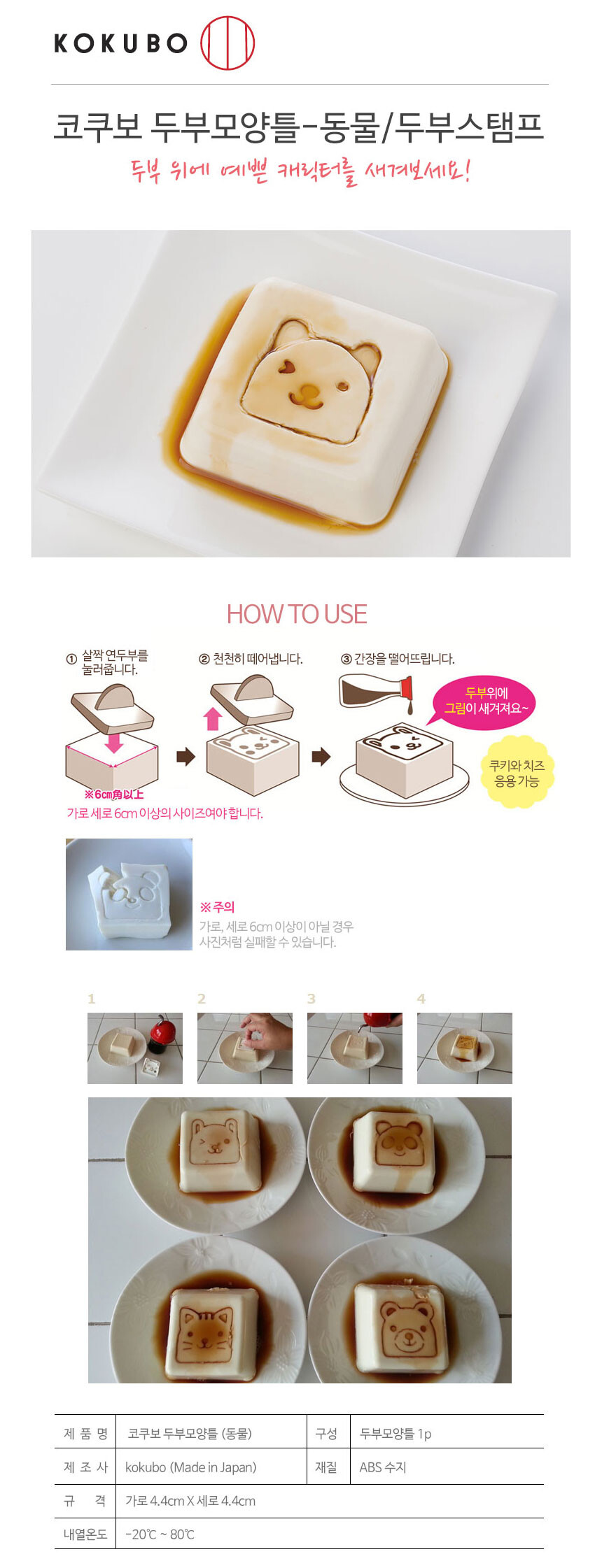 코쿠보 두부 스탬프 쿠키 커터 동물 모양틀