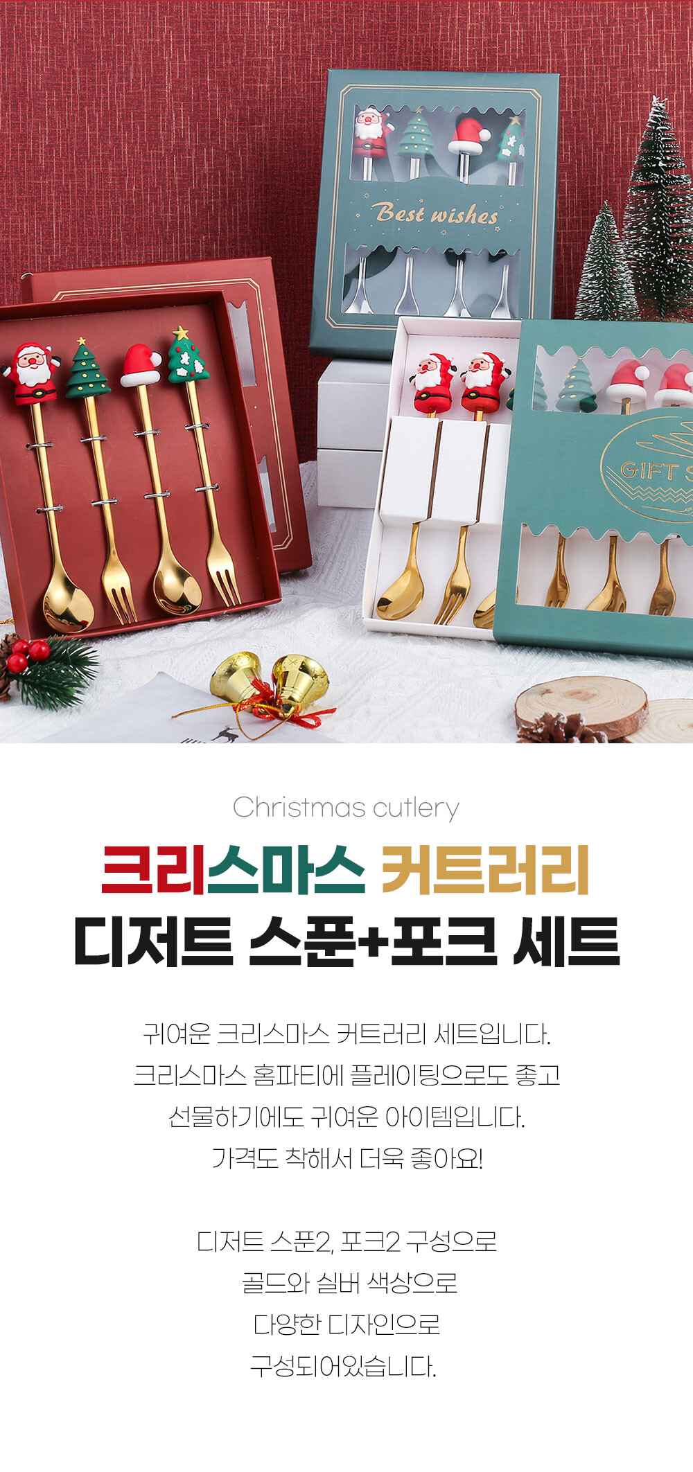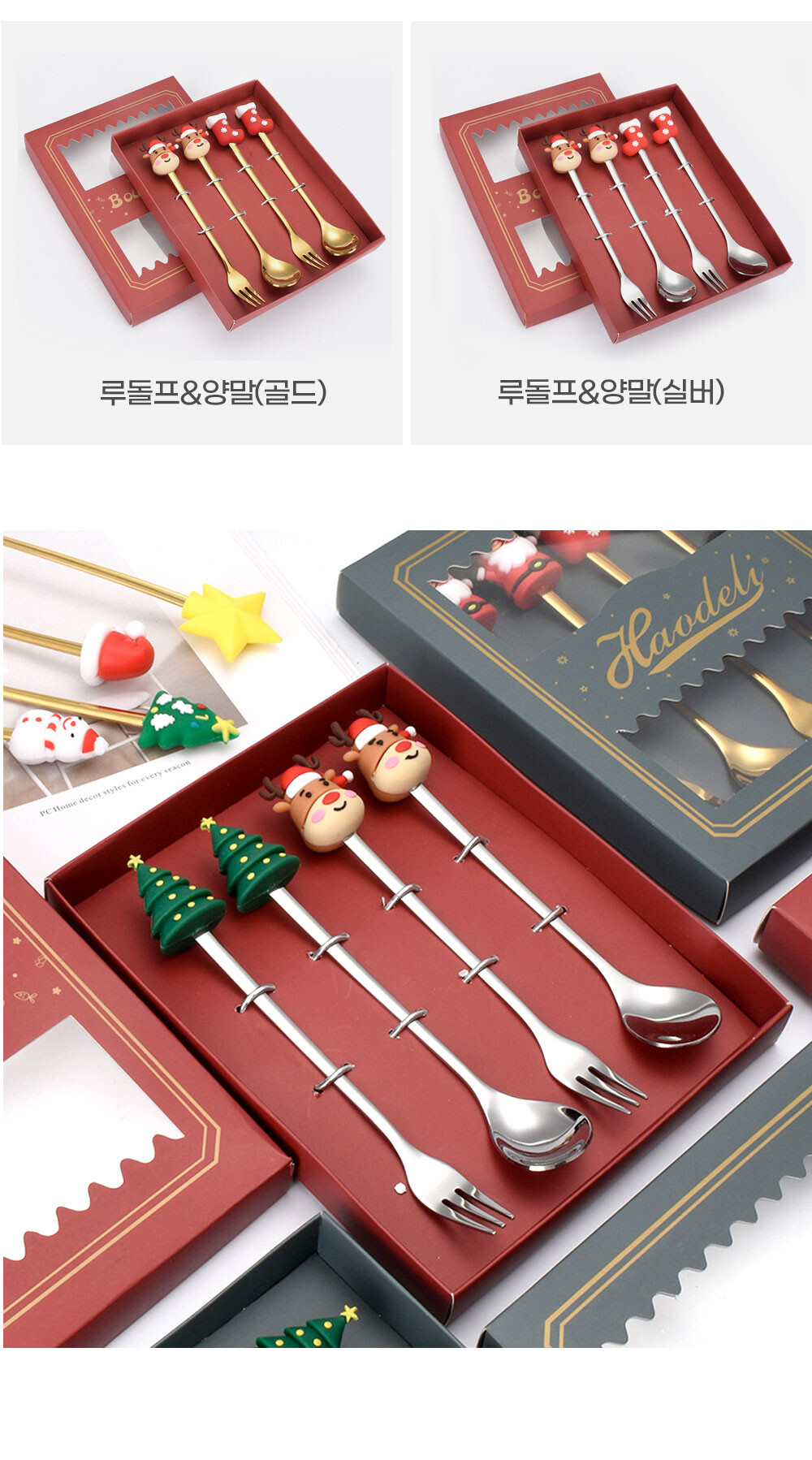 크리스마스 커트러리 디저트 스푼 포크 4P세트