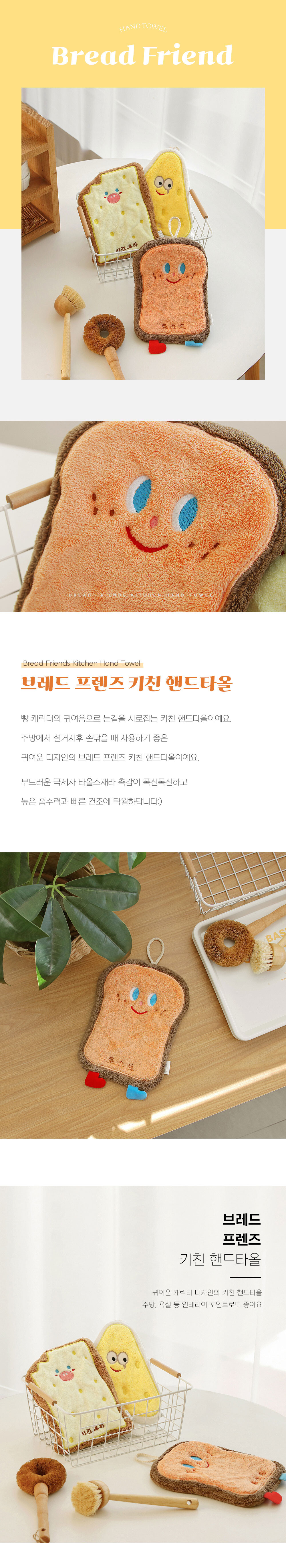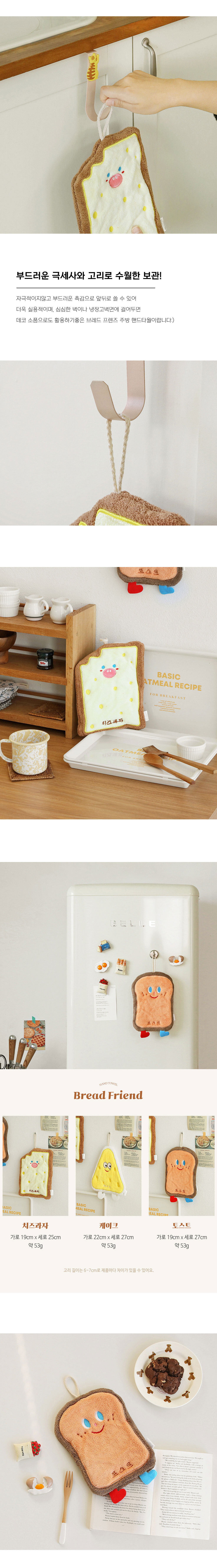 도톰한 브레드 프렌즈 주방타월 고리형 수건 극세사 핸드타월