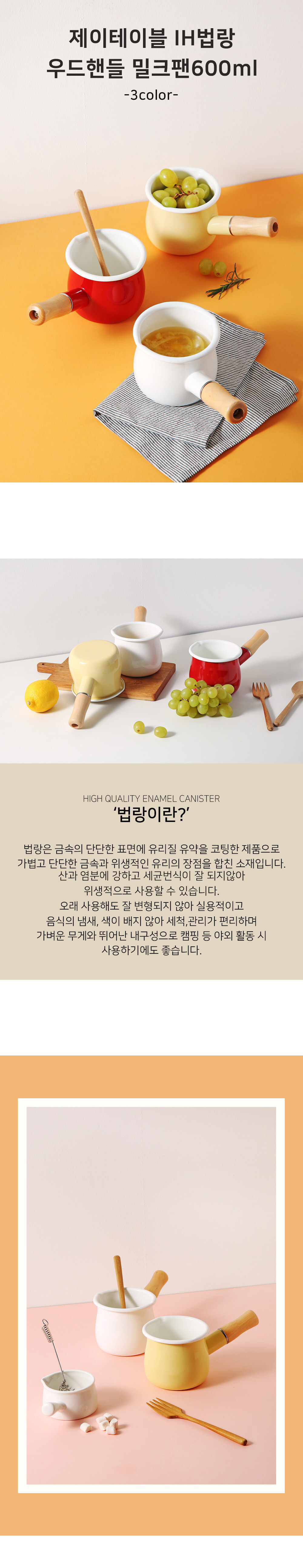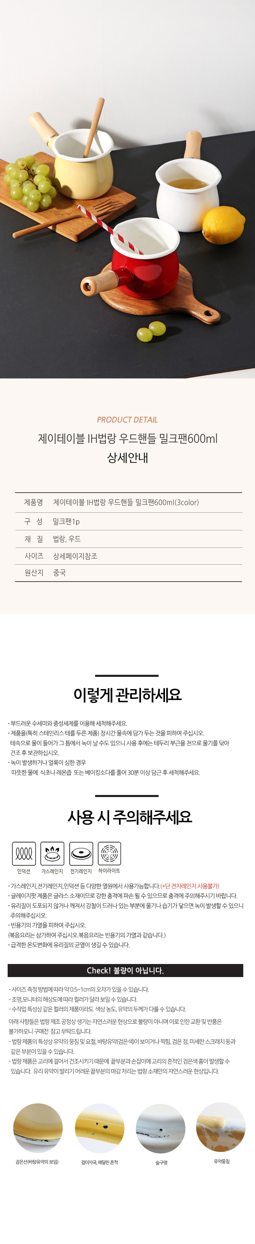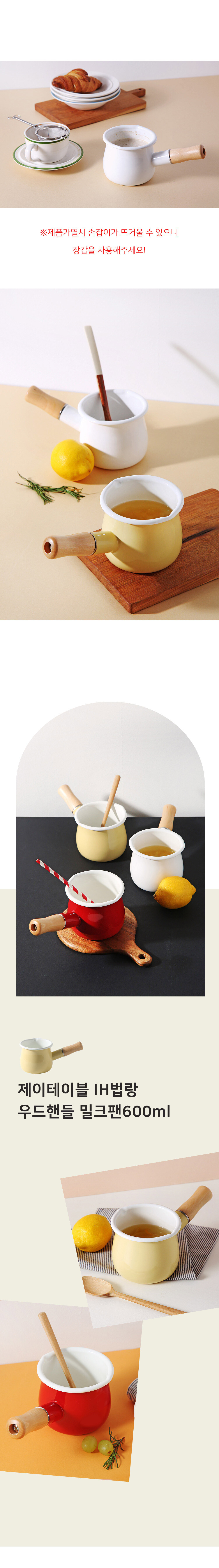 제이테이블 IH법랑 우드핸들 밀크팬 600ml