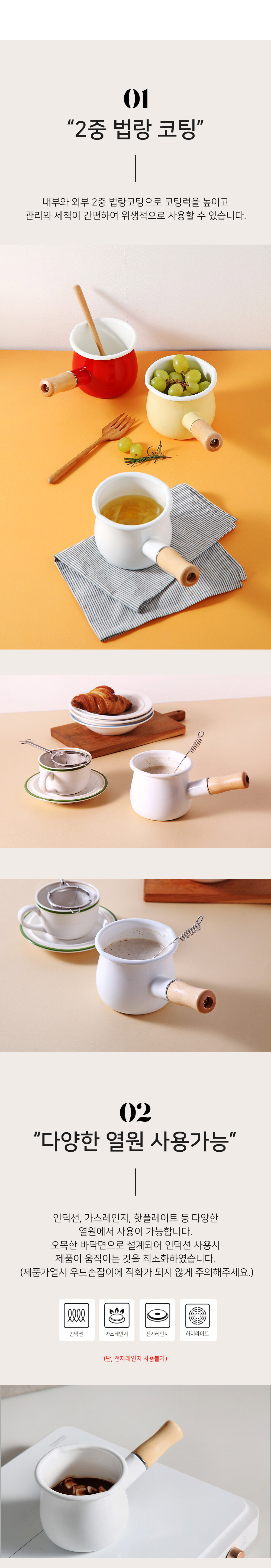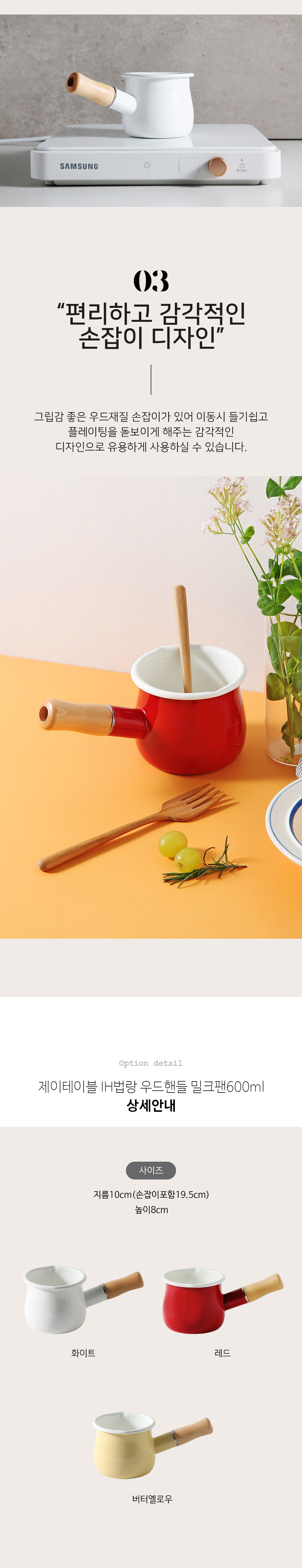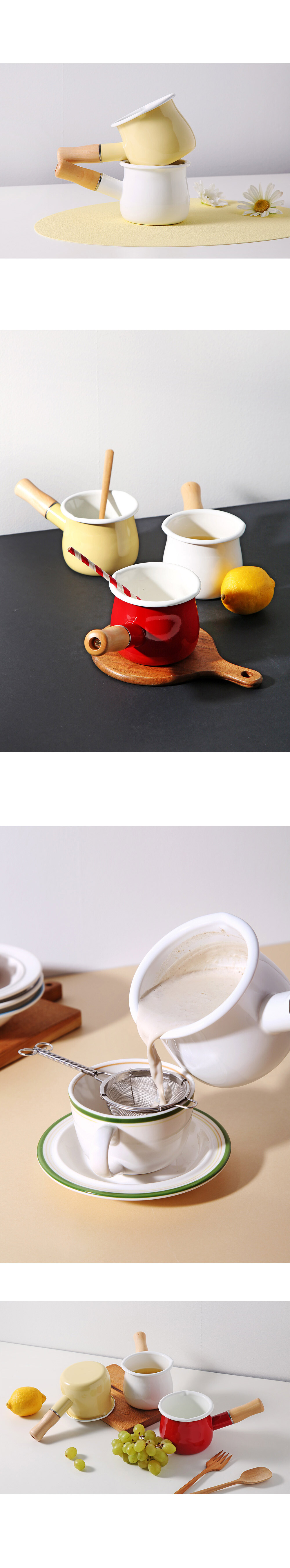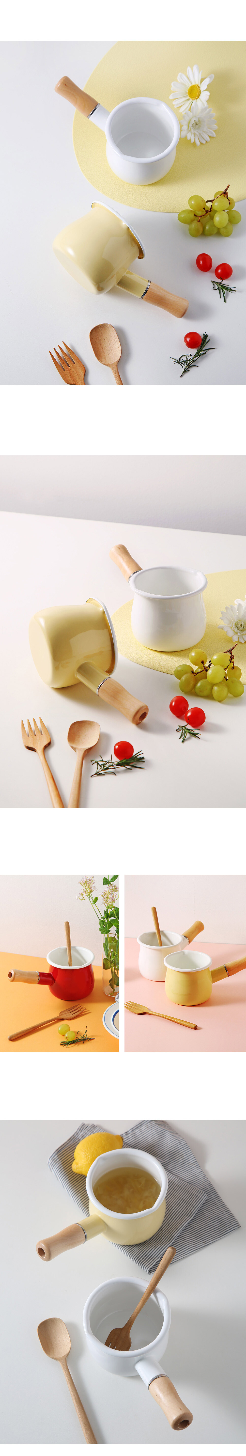 제이테이블 IH법랑 우드핸들 밀크팬 600ml