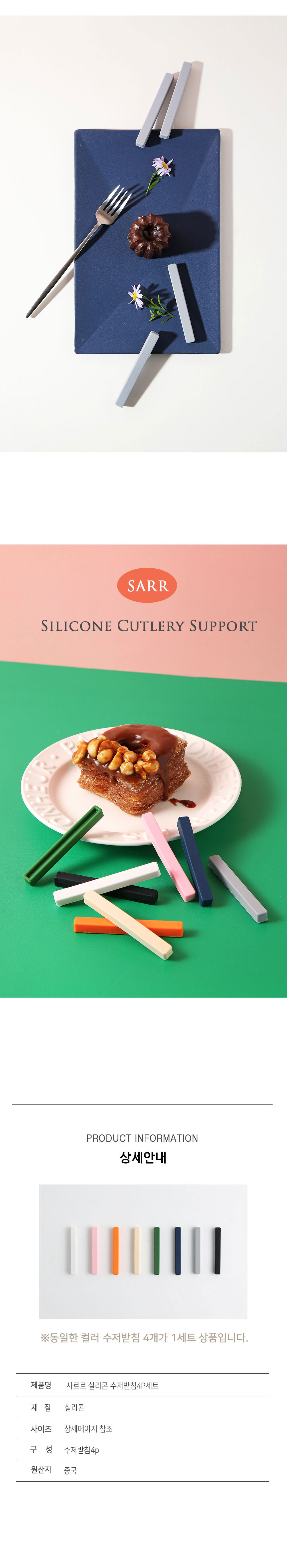 사르르 실리콘 일자 수저받침 4p세트
