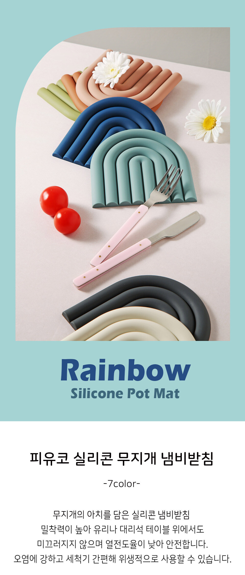 피유코 실리콘 무지개 냄비받침