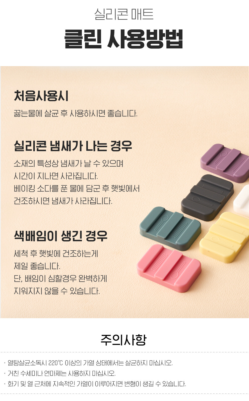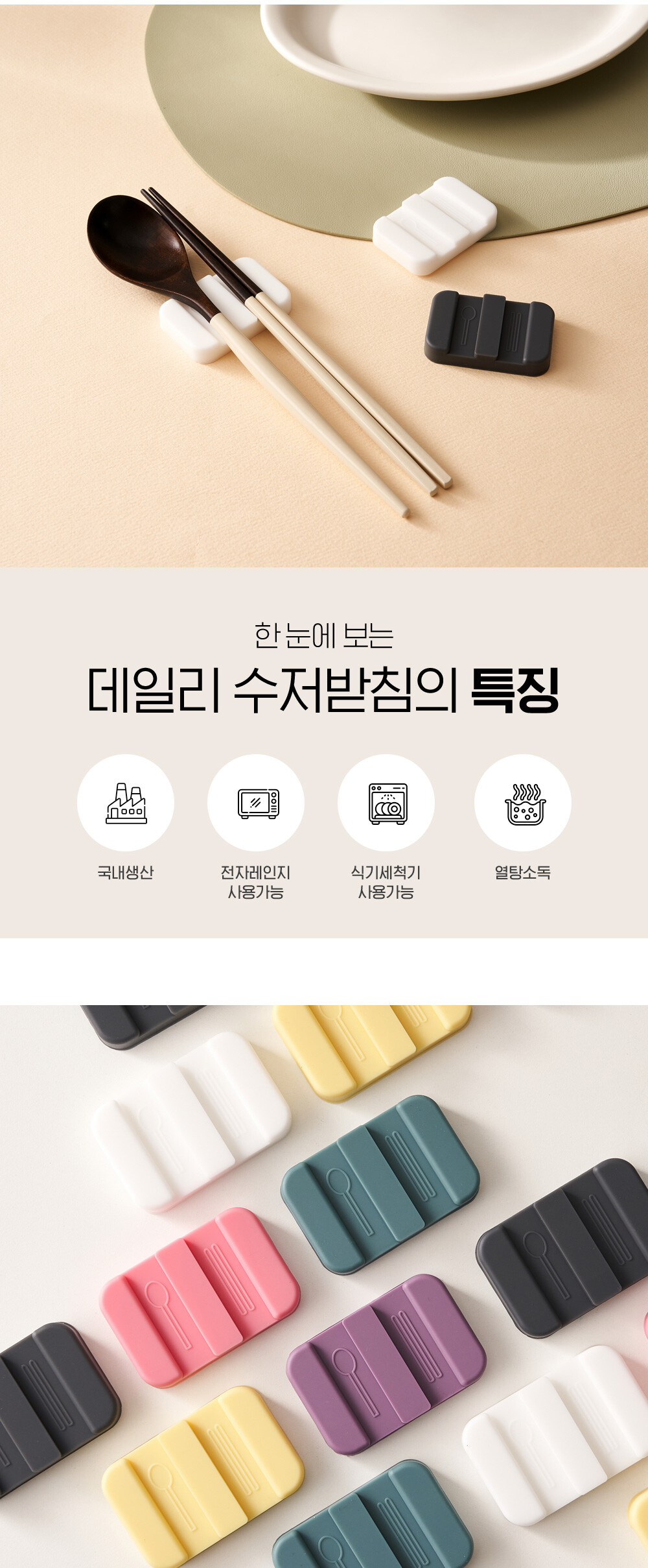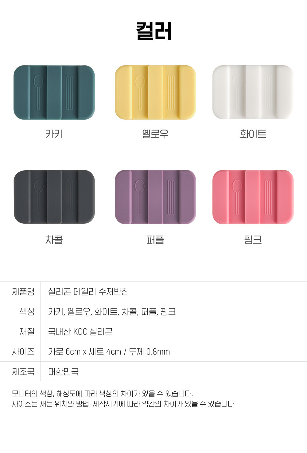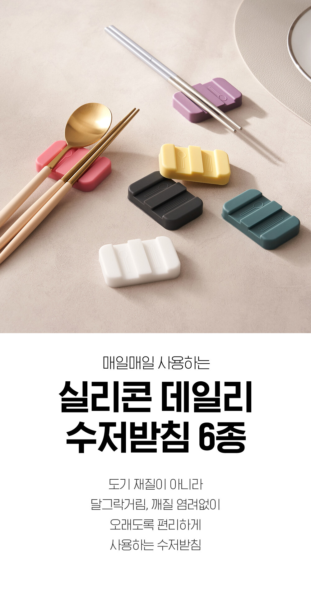 리빙안 실리콘 데일리 수저받침 6종 1세트