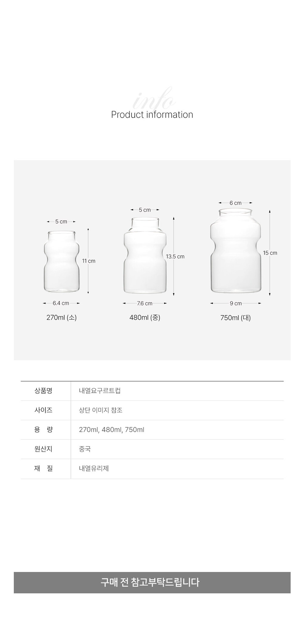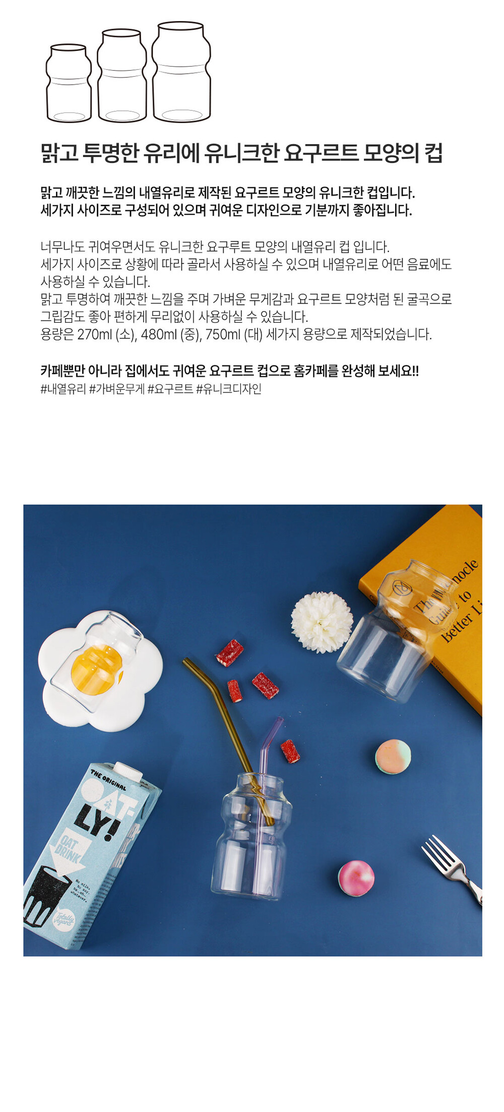 요구르트 내열 유리컵 3size