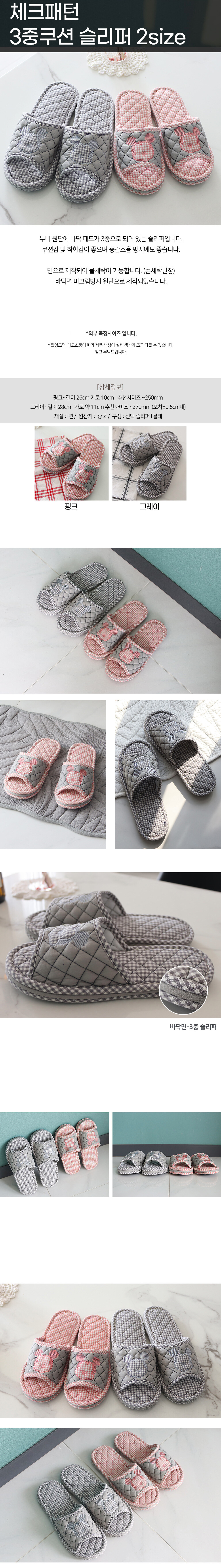 체크패턴 3중쿠션 거실 실내화 슬리퍼