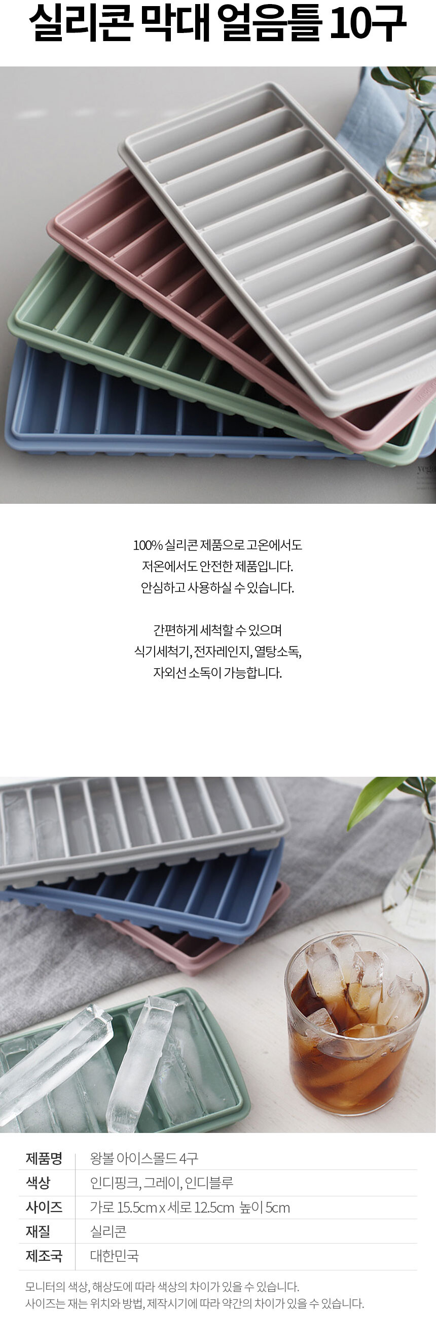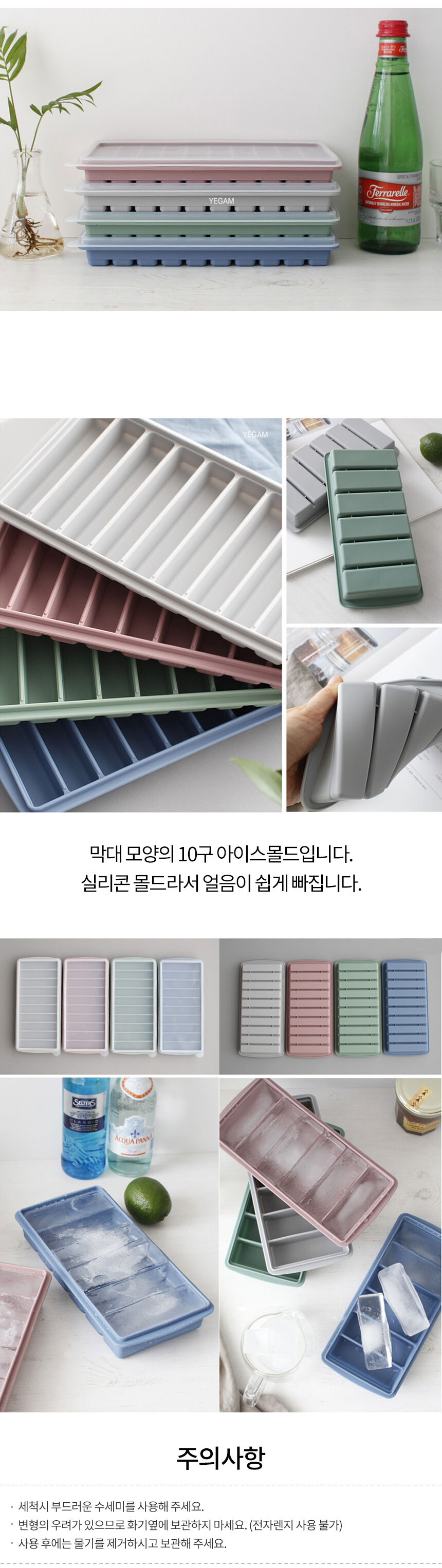 리빙안 긴 막대 실리콘 얼음틀 아이스몰드 10구