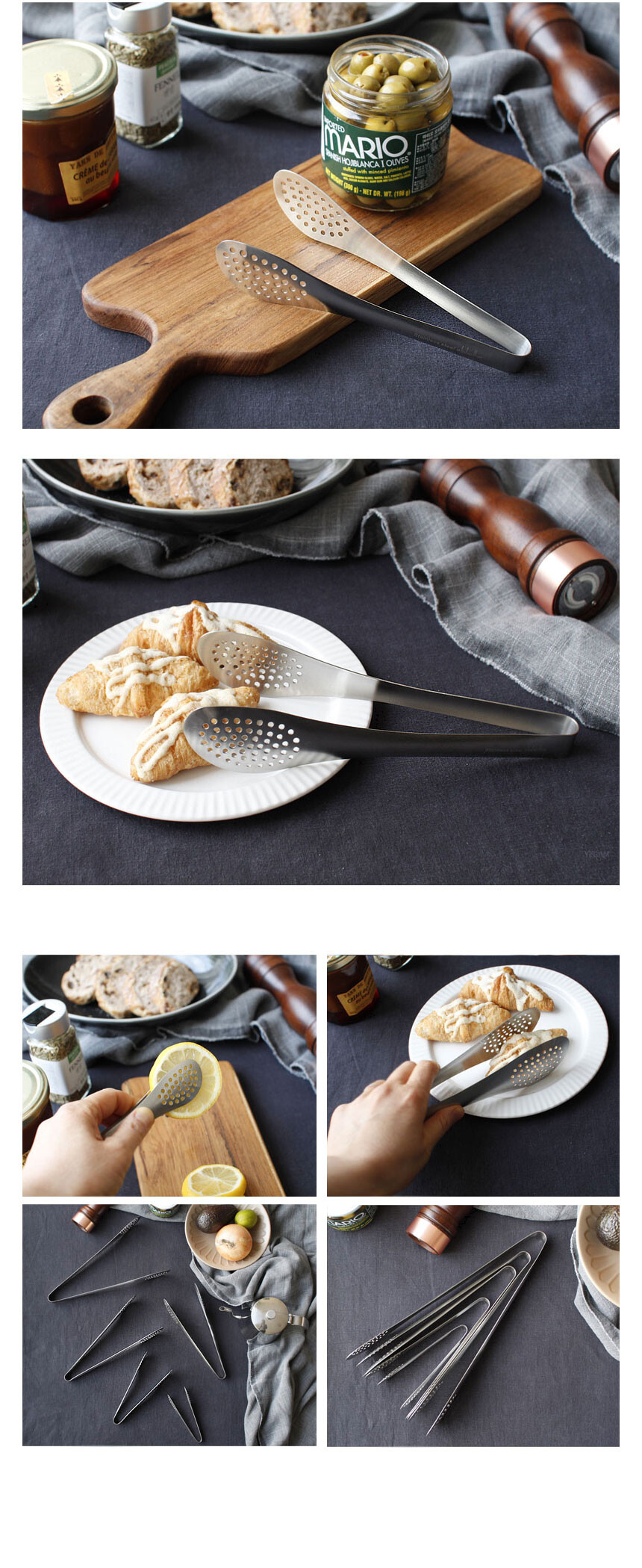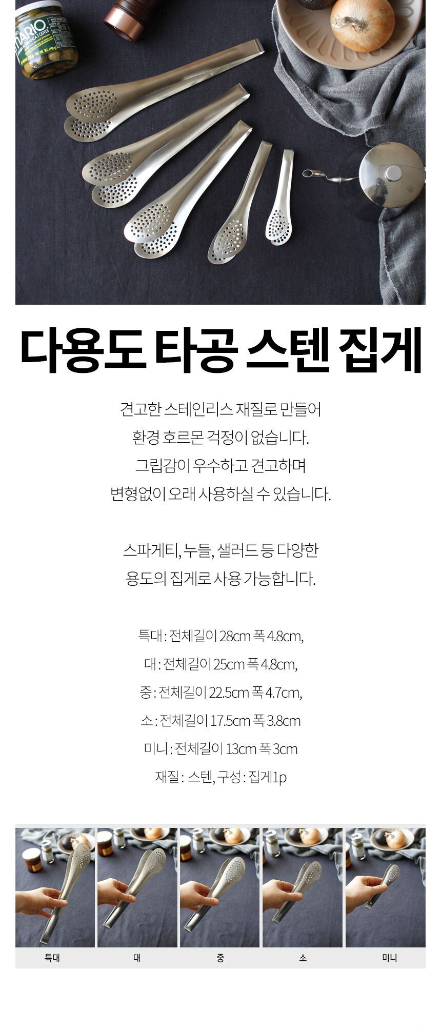 리빙안 치킨 파스타 스파게티 튀김 타공 스텐 집게 5size